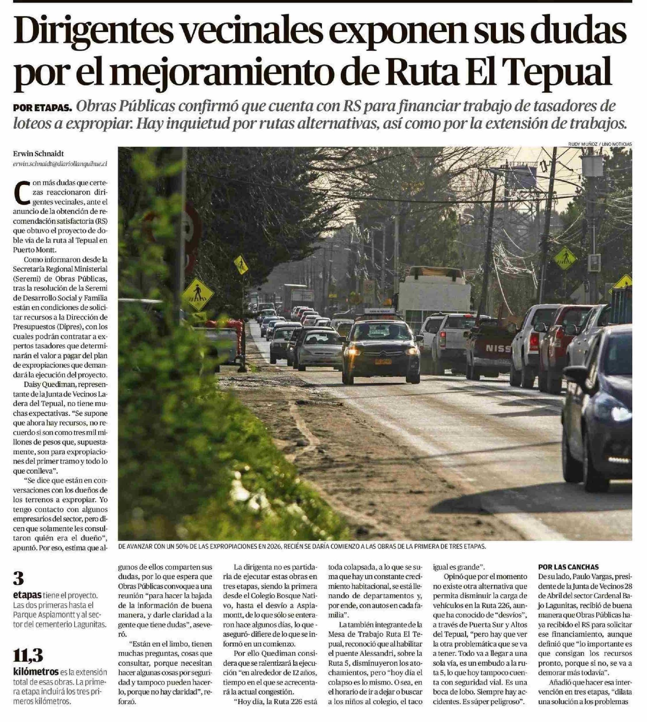Dirigentes vecinales exponen sus dudas por el mejoramiento de Ruta El Tepual 10-06-2025 El Llanquihue |