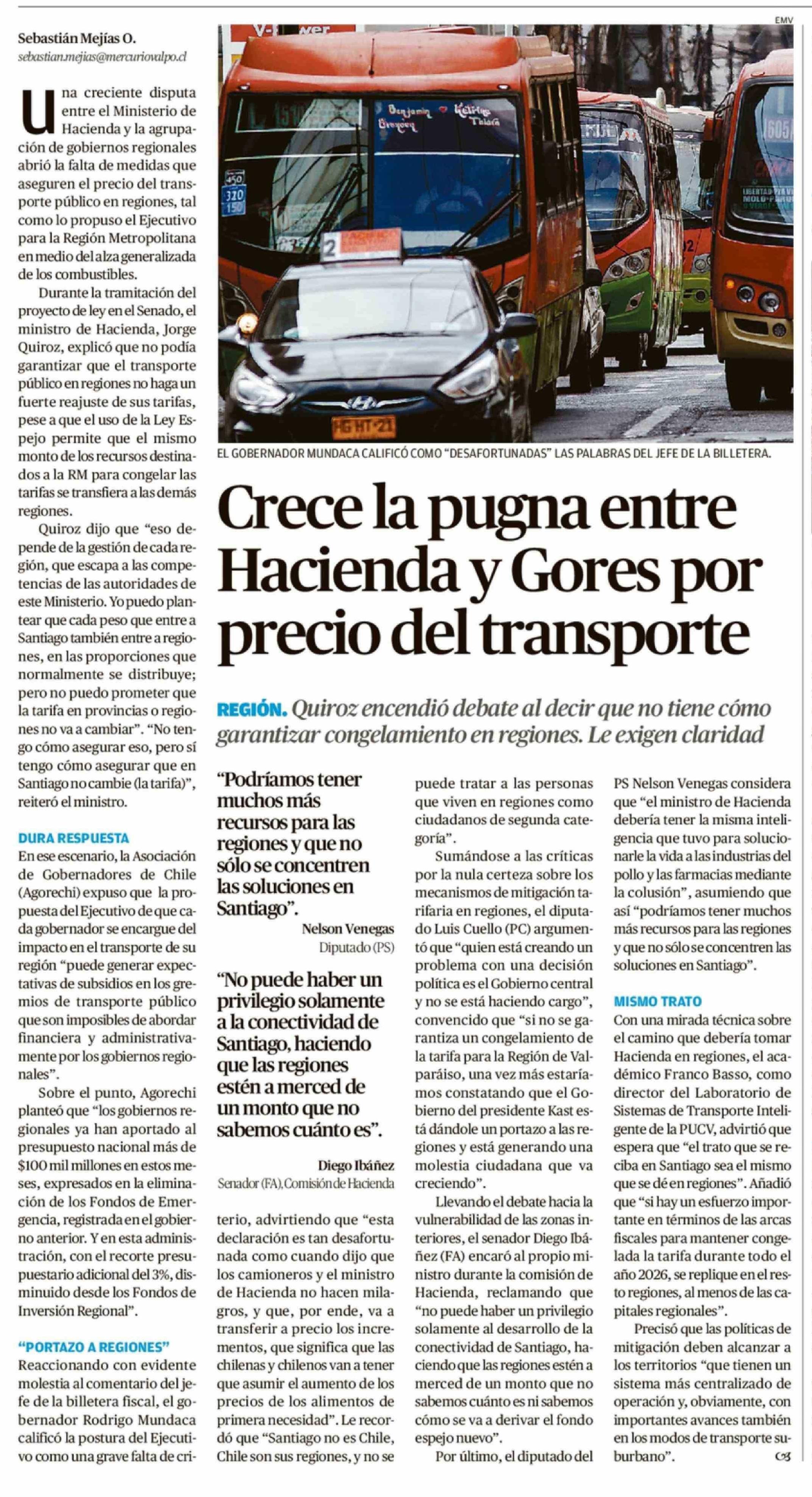 Crece la pugna entre Hacienda y Gores por precio del transporte 26-03-2026 El Mercurio de Valparaíso |
