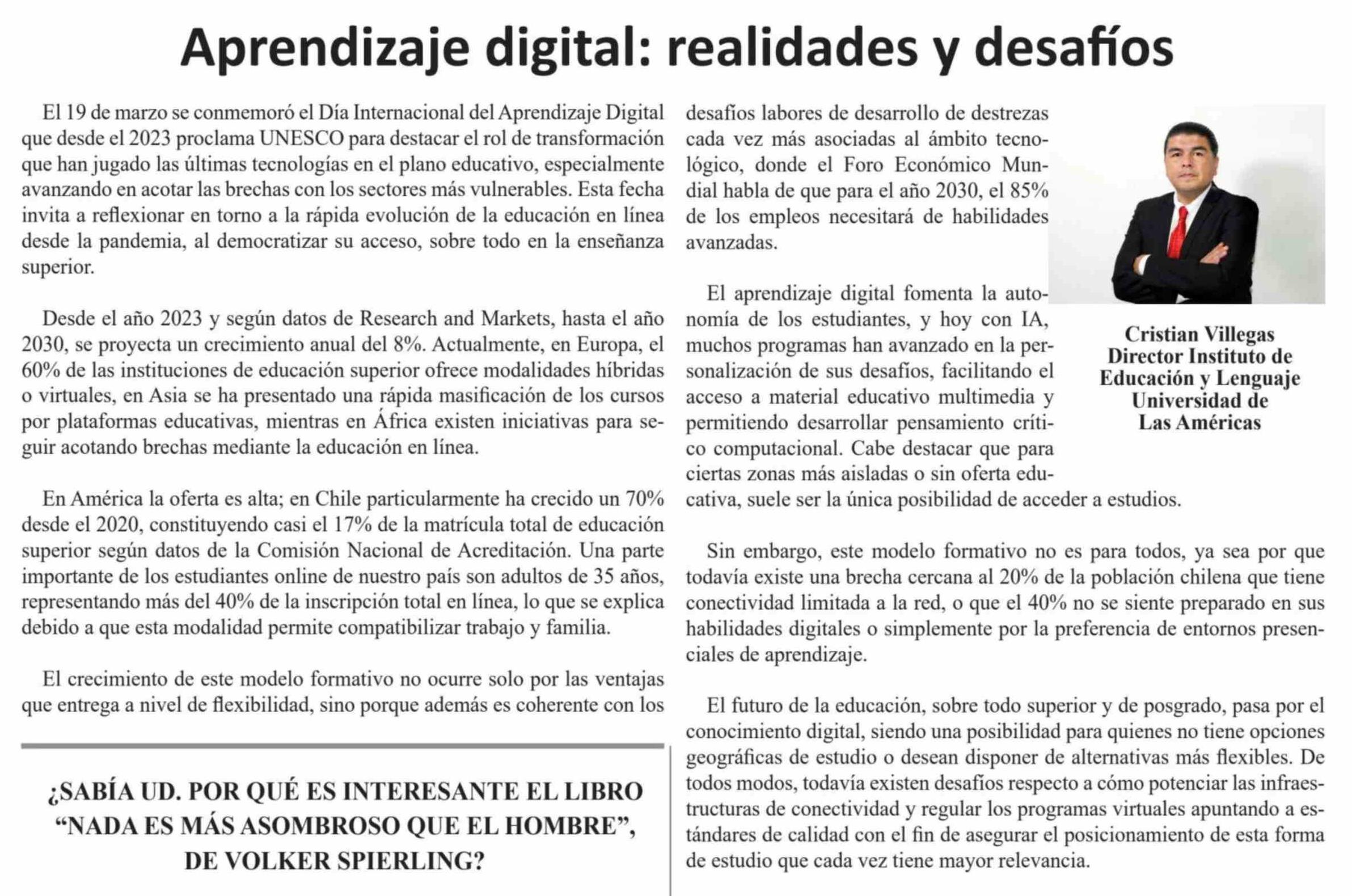 Columnas de Opinión: Aprendizaje digital: realidades y desafíos