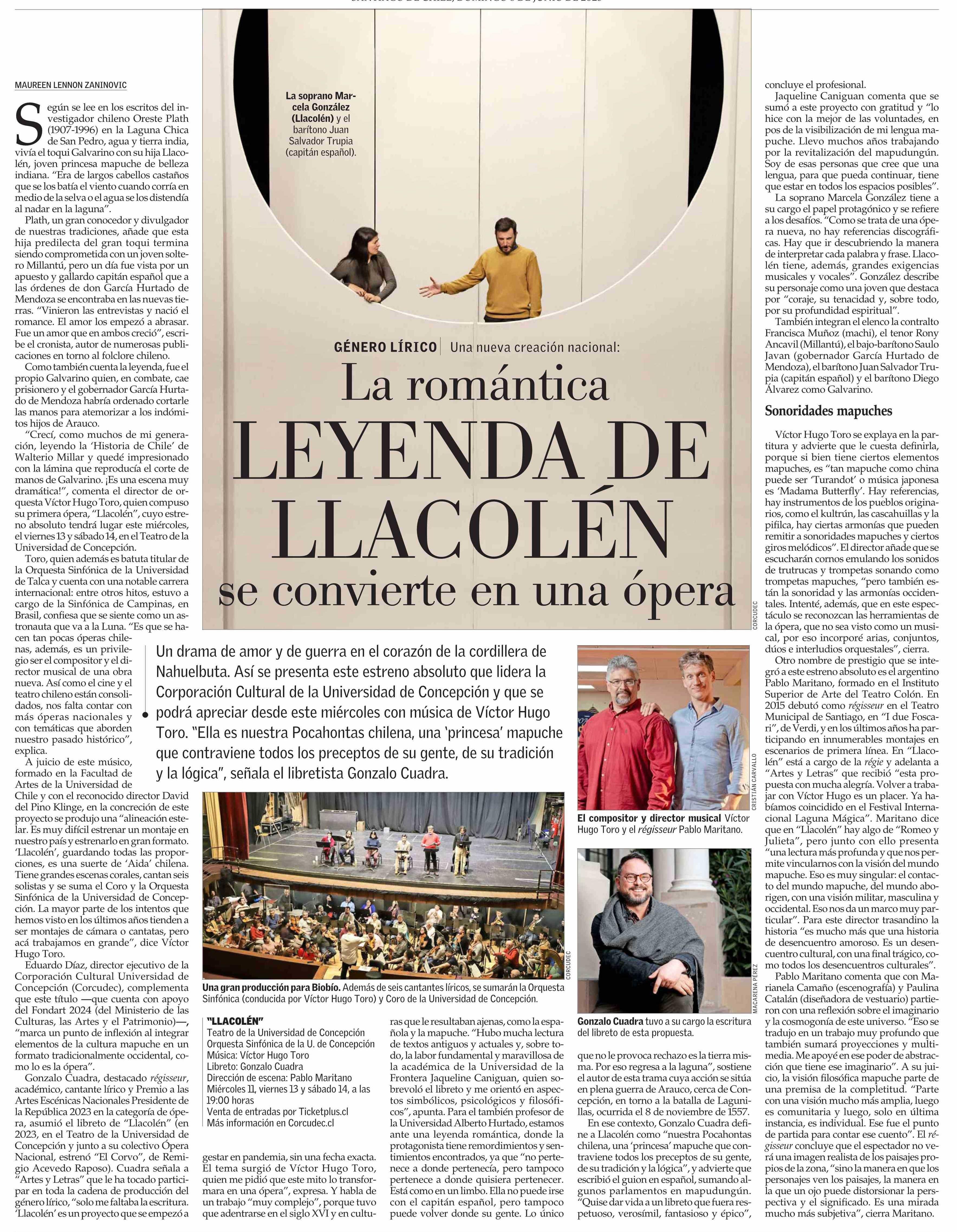 La romantica LEYENDA DE LLACOLEN se convierte en una ópera 08-06-2025 El Mercurio |