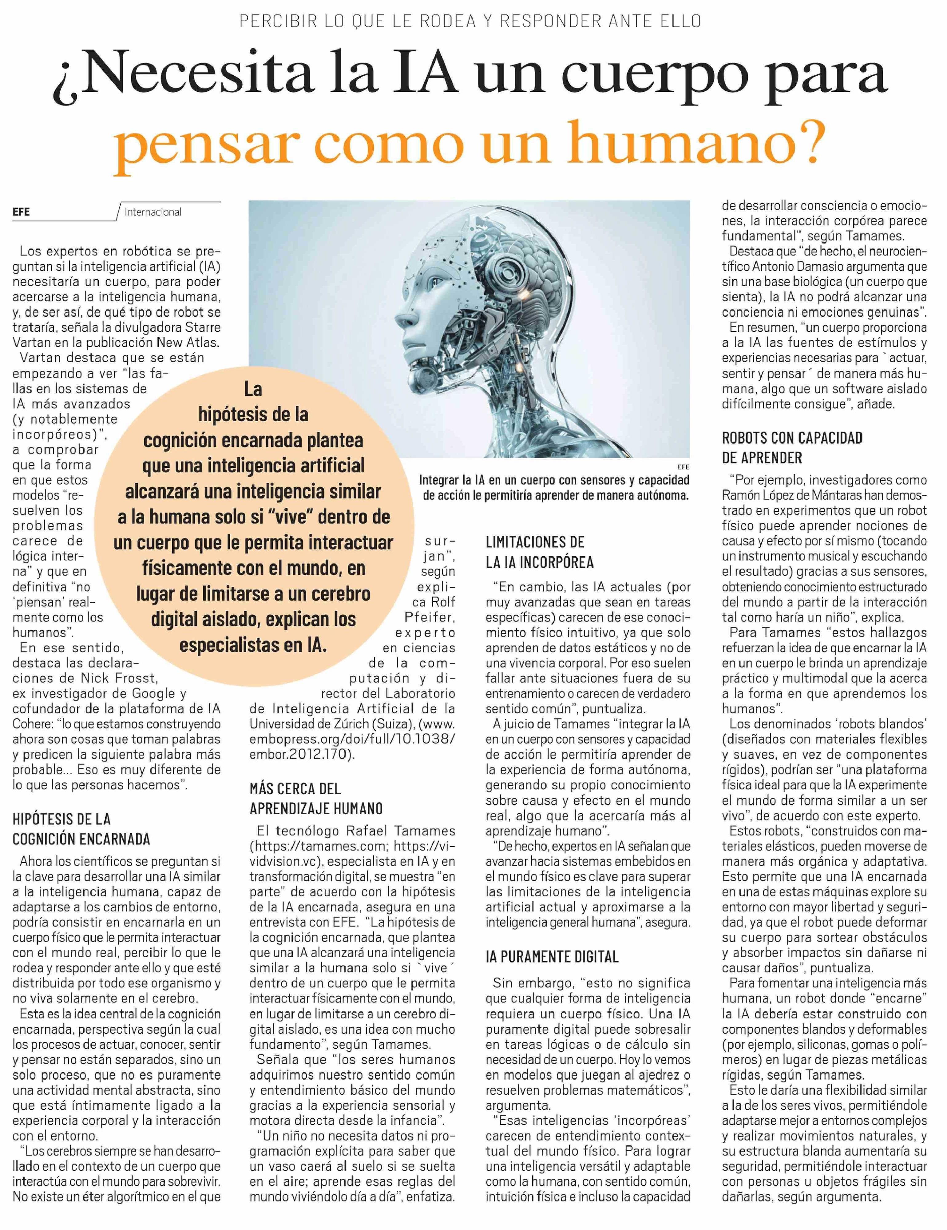 ¿Necesita la IA un cuerpo para pensar como un humano? 10-03-2026 El Día |
