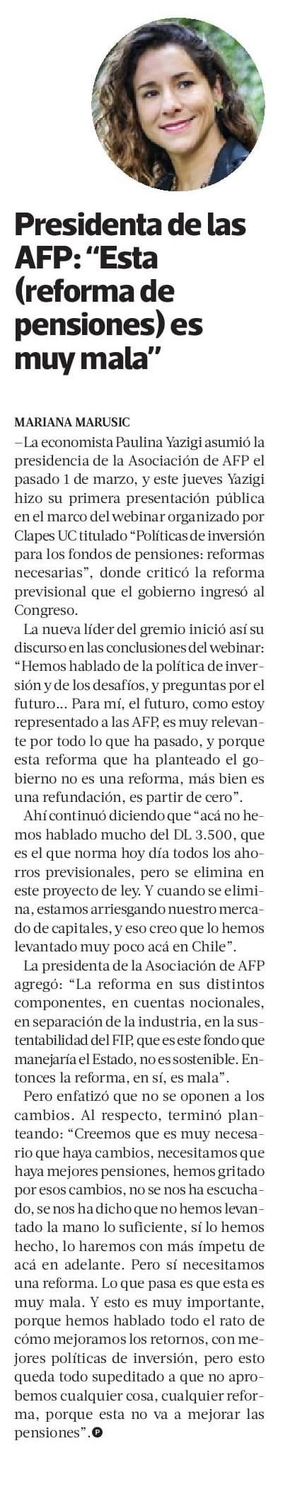 | Título: | Presidenta de las AFP: “Esta (reforma de pensiones) es muy mala” |