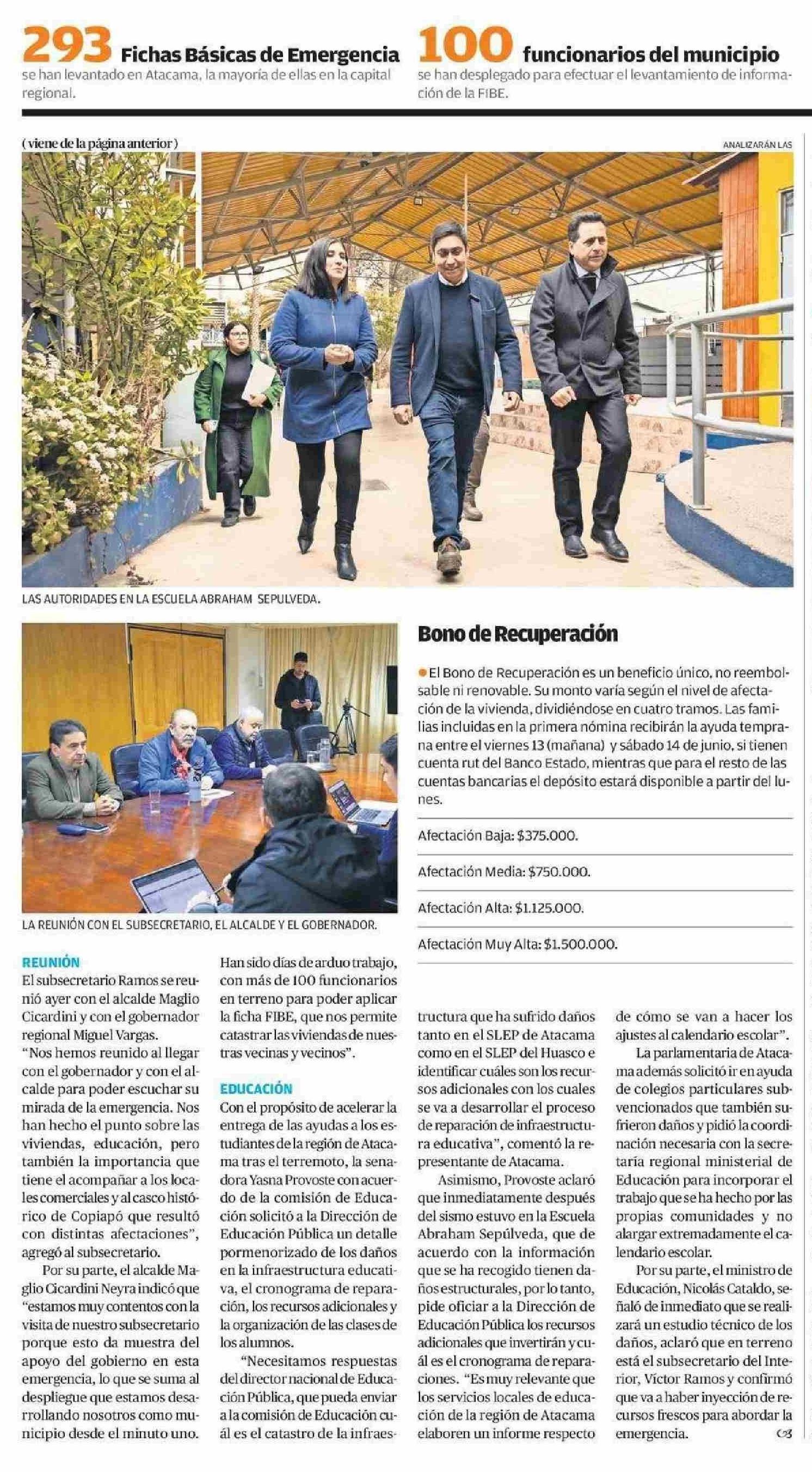 Familias afectadas por sismo tendrán el Bono Recuperación 12-06-2025 El Diario de Atacama |