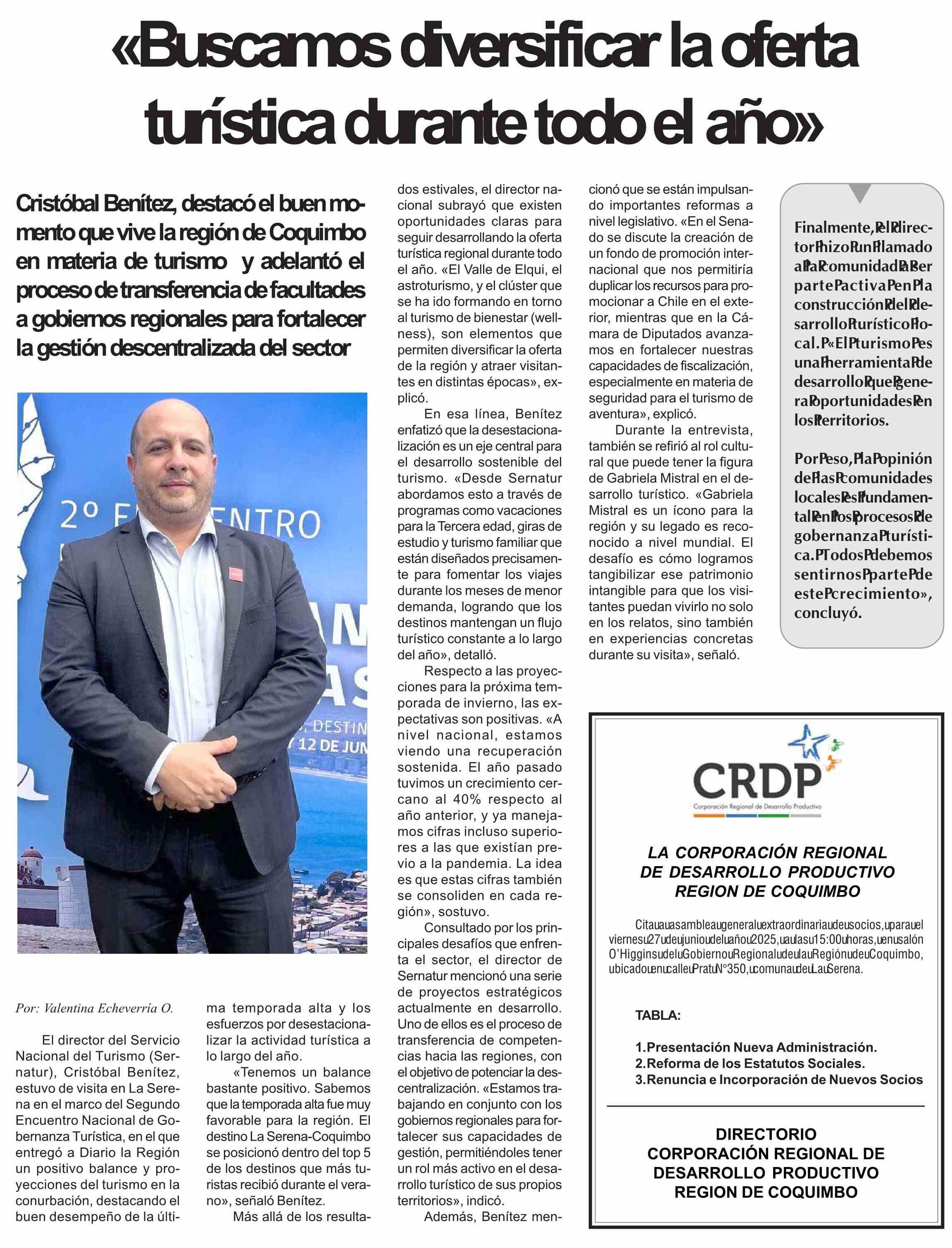 «Buscamos diversificar la oferta turística durante todo el año» 12-06-2025 Diario la Región |