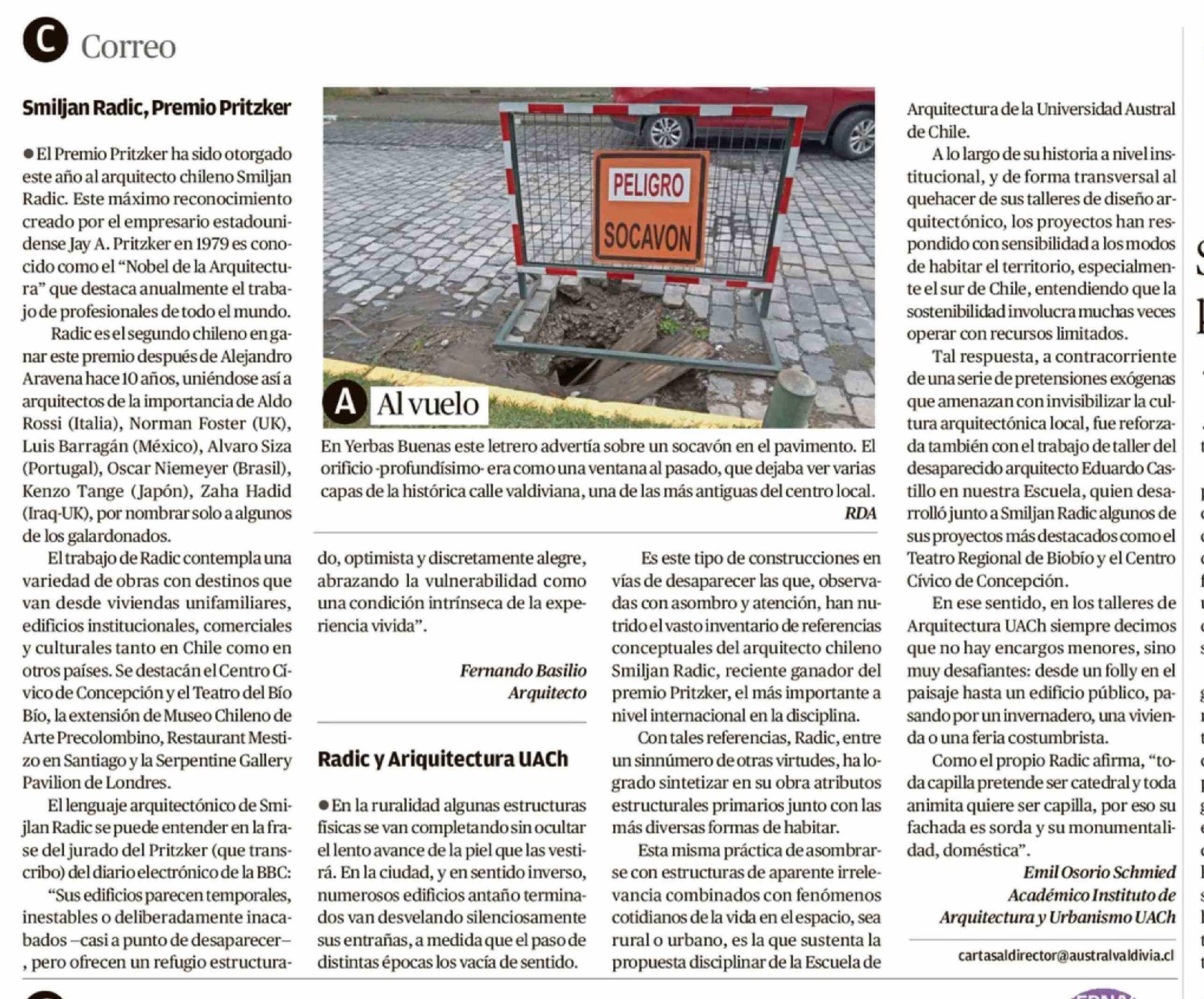 Título: Cartas: Smiljan Radic, Premio Pritzker