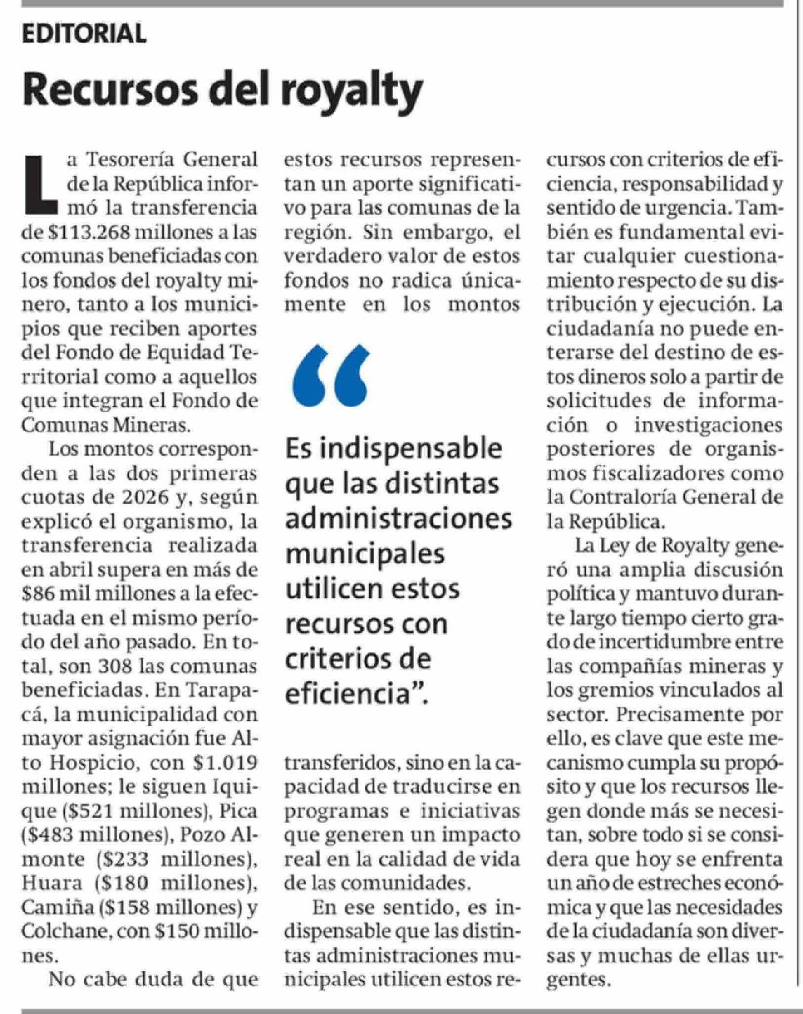 Fecha: 24-04-2026 Sector: Editorial Región: Región de Tarapacá