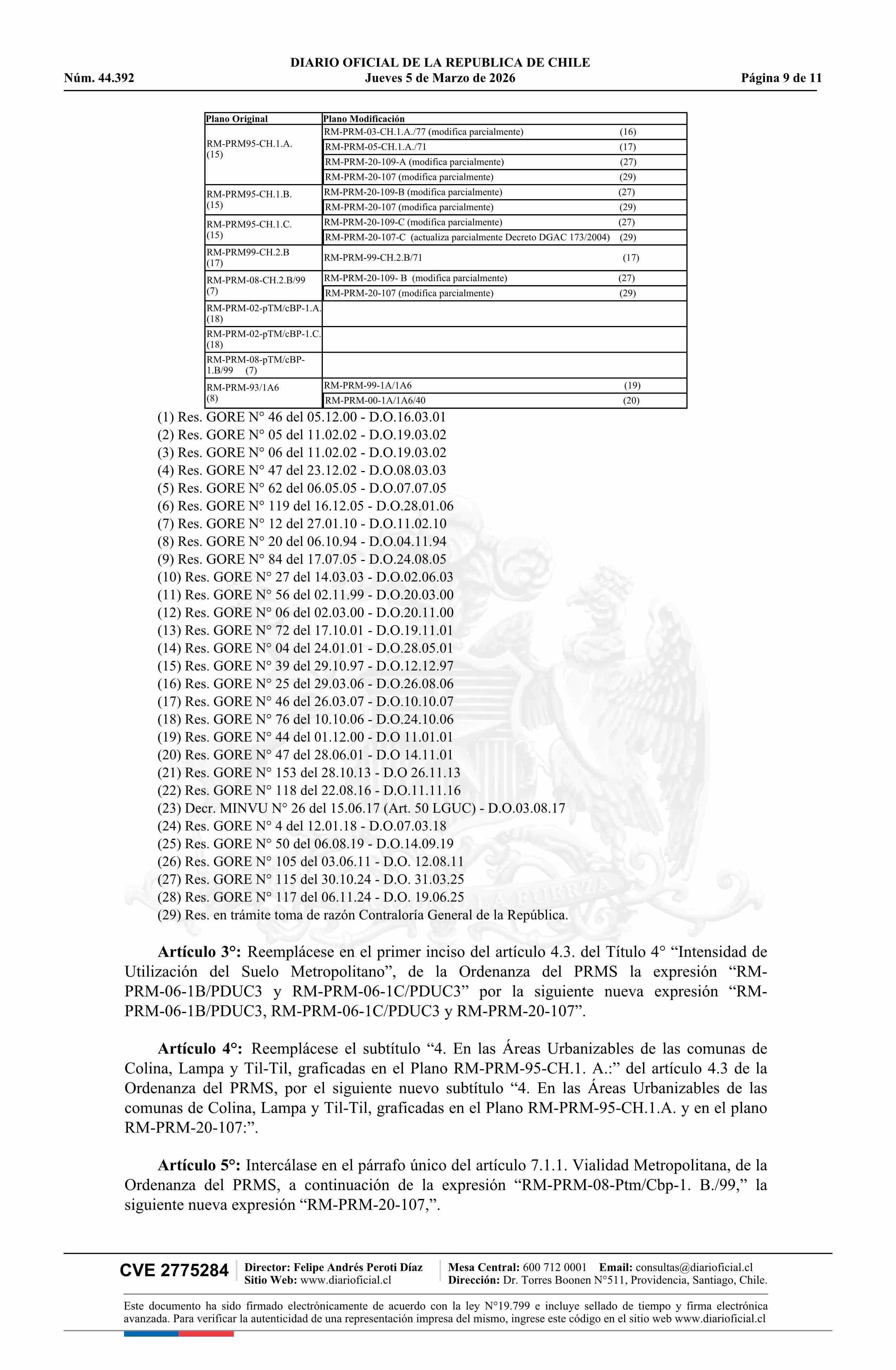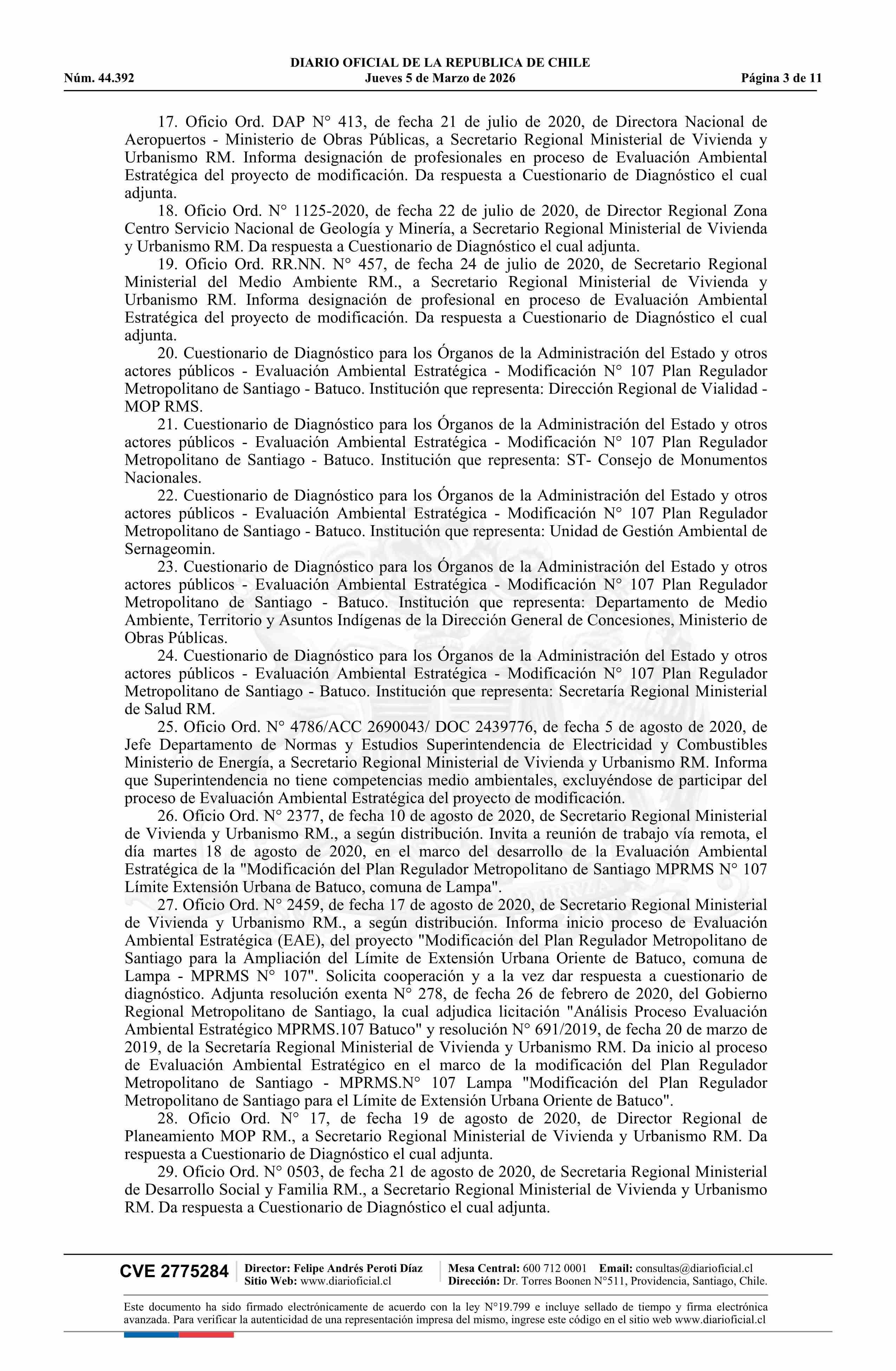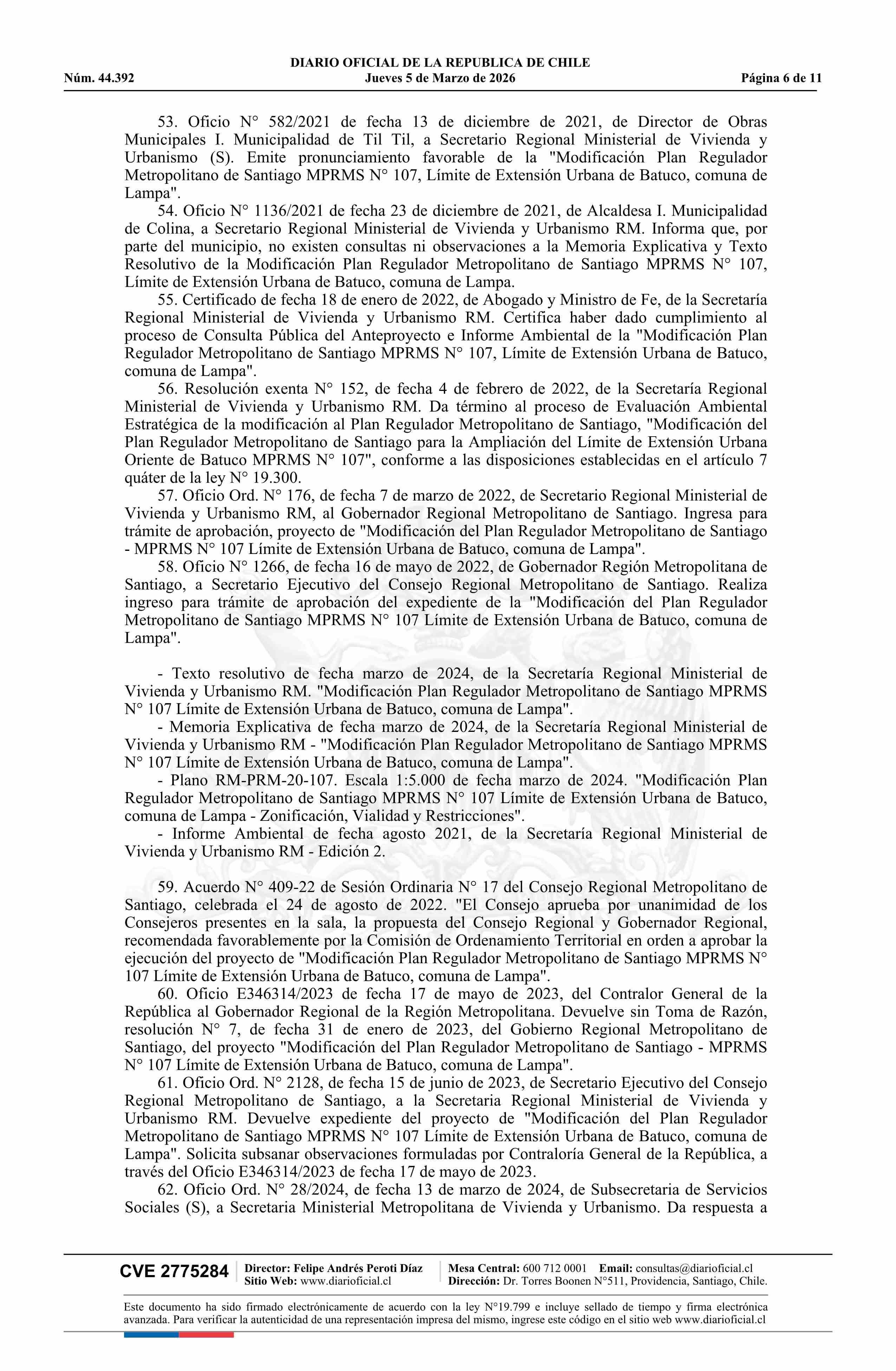 Resolución número 92, de 2025.- Modifica Plan Regulador Metropolitano de Santiago en los términos que indica en el límite de la extensión urbana de Batuco, comuna de Lampa 05-03-2026 Diario Oficial Edición Electrónica |