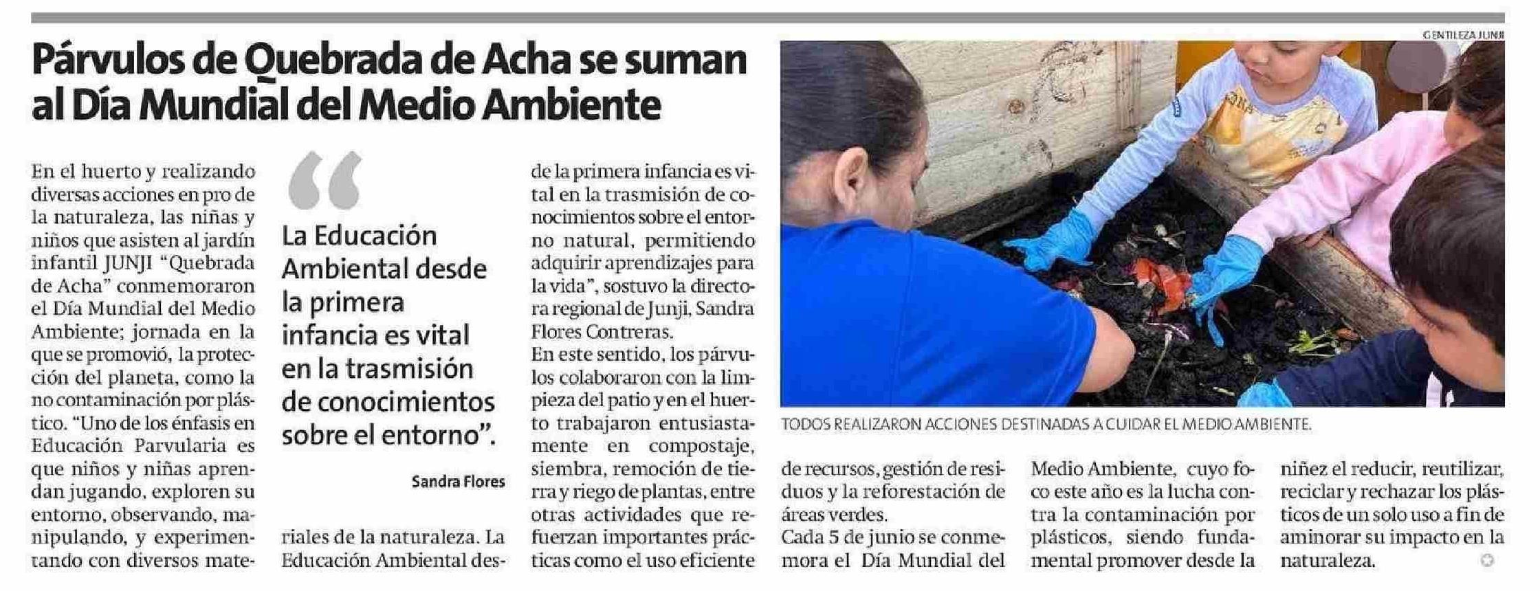Párvulos de Quebrada de Acha se suman al Día Mundial del Medio Ambiente 09-06-2025 La Estrella de Arica |