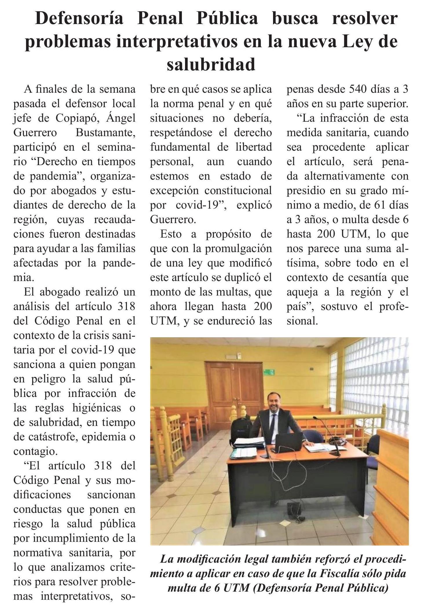 Defensoría Penal Pública busca resolver problemas interpretativos en la nueva Ley de salubridad 09-07-2020 Diario Chañarcillo |