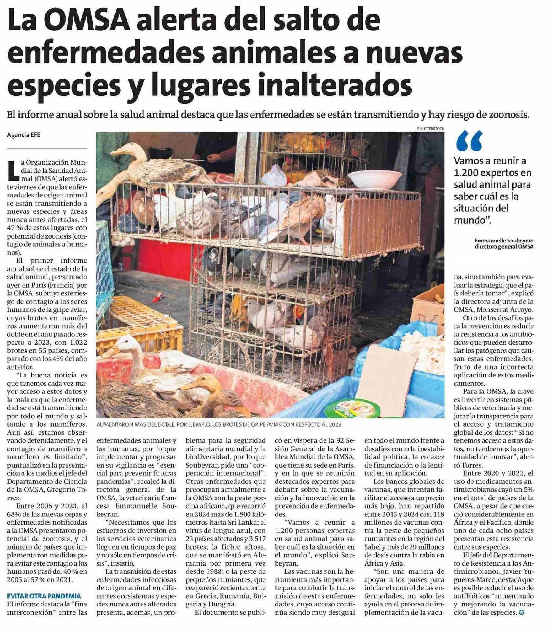 La OMSA alerta del salto de enfermedades animales a nuevas especies y lugares inalterados 24-05-2025 La Estrella de Antofagasta |
