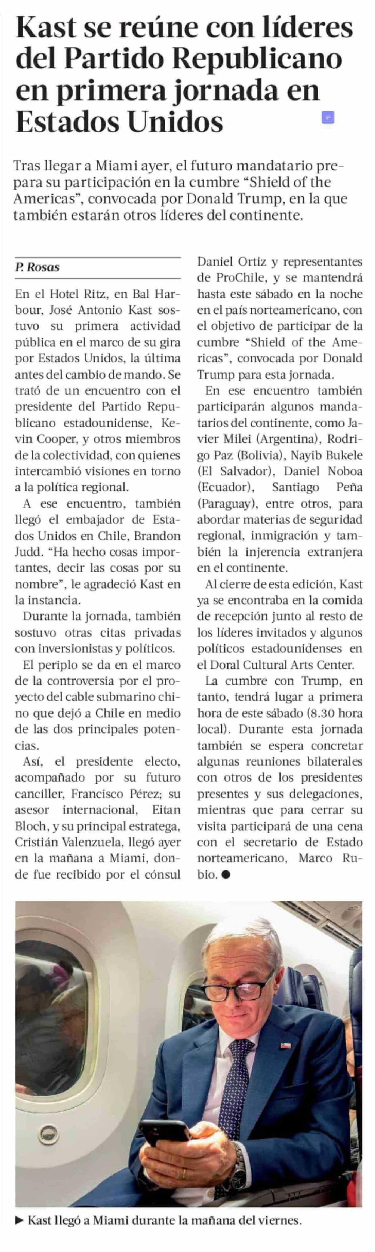 Título: Kast se reúne con líderes del Partido Republicano en primera jornada en Estados Unidos