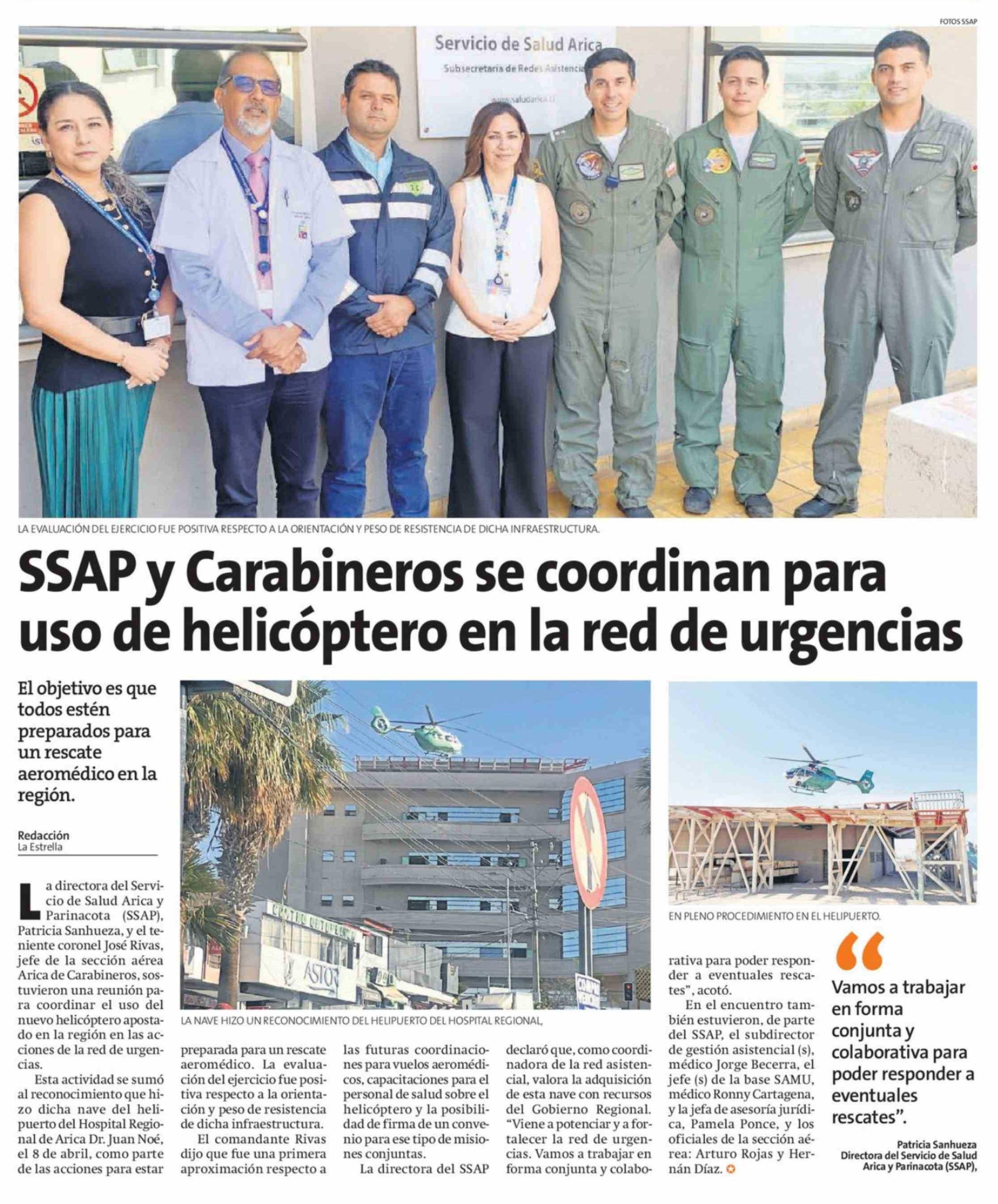 SSAP y Carabineros se coordinan para uso de helicóptero en la red de urgencias 15-04-2026 La Estrella de Arica |