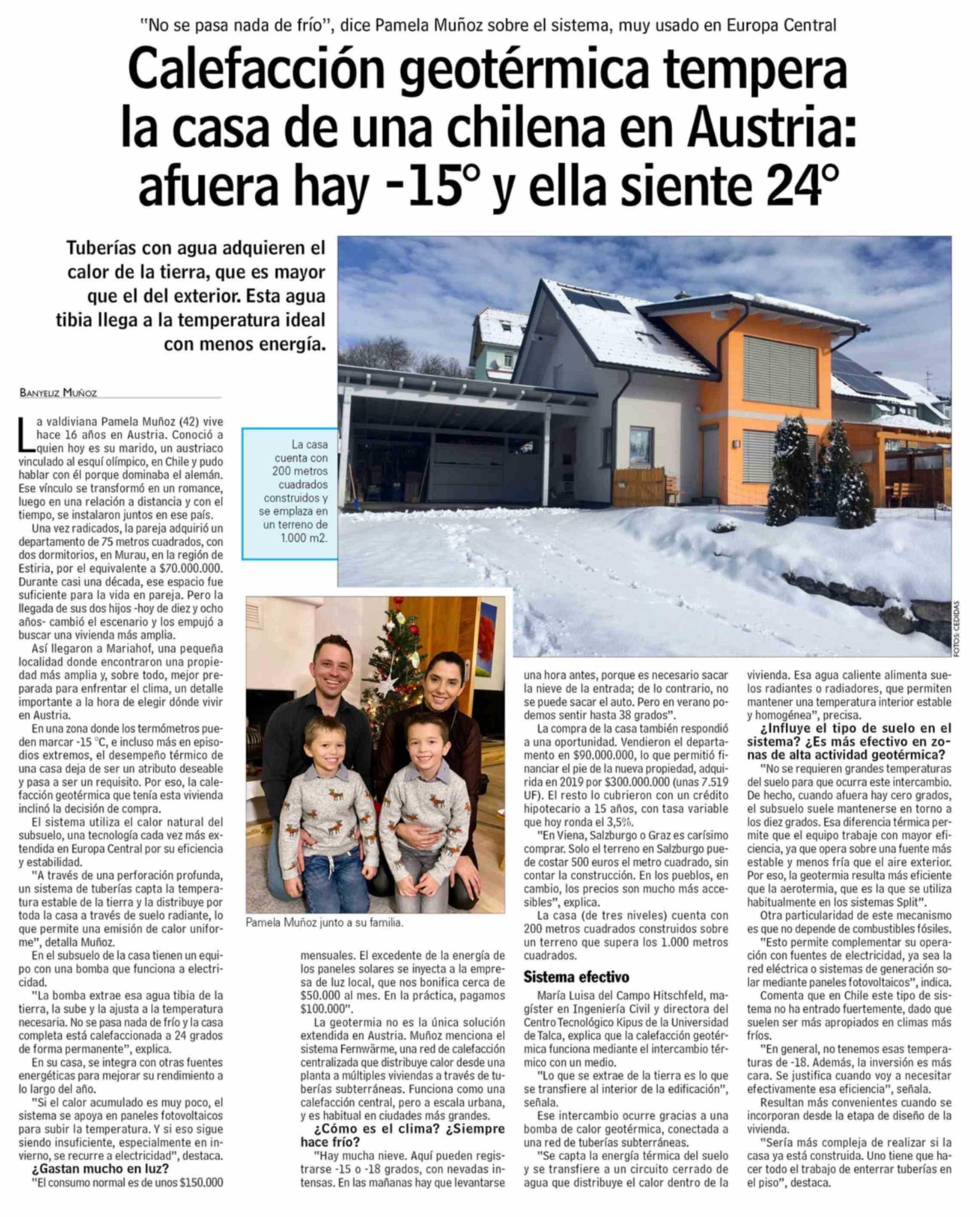 Calefacción geotermica tempera la casa de una chilena en Austria: afuera hay -15° y ella siente 24º 14-04-2026 Las Últimas Noticias |
