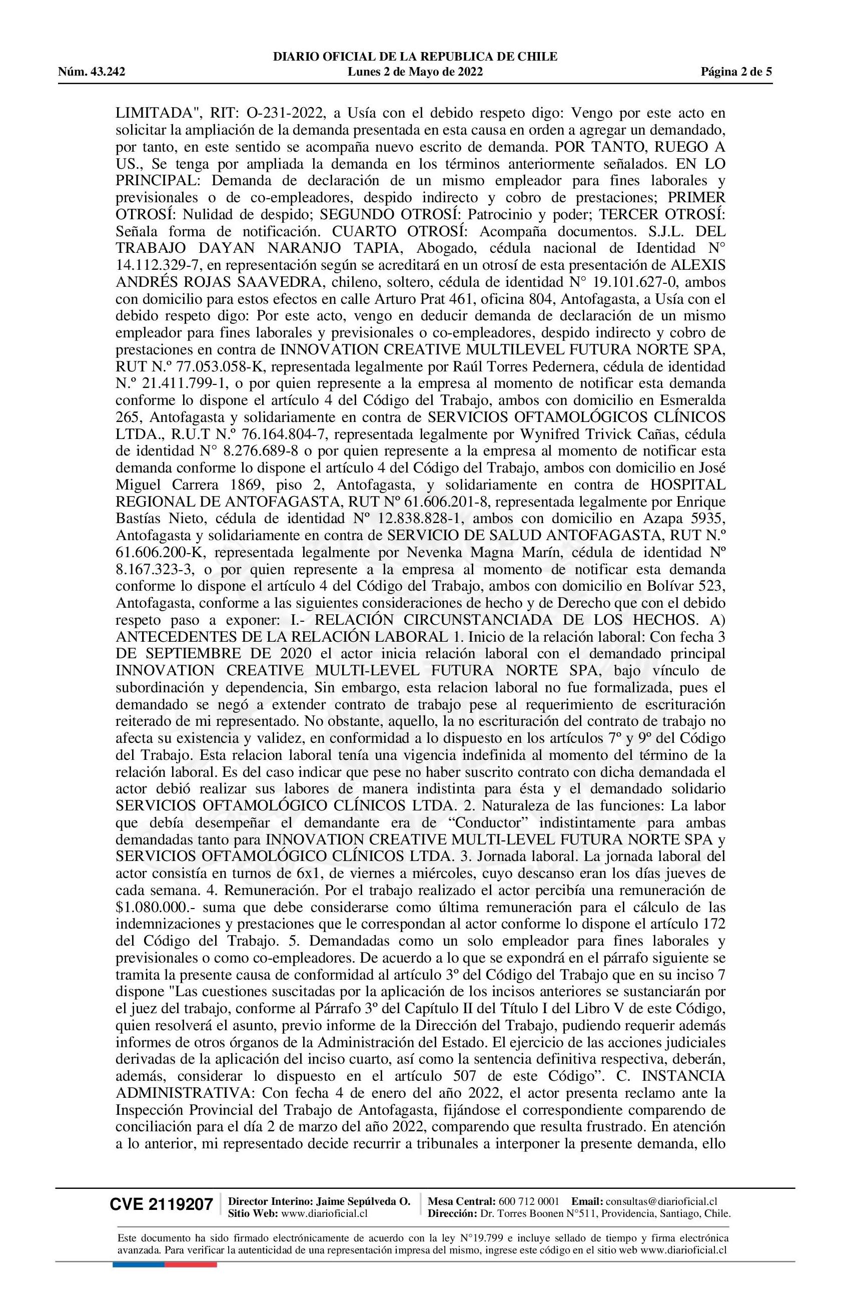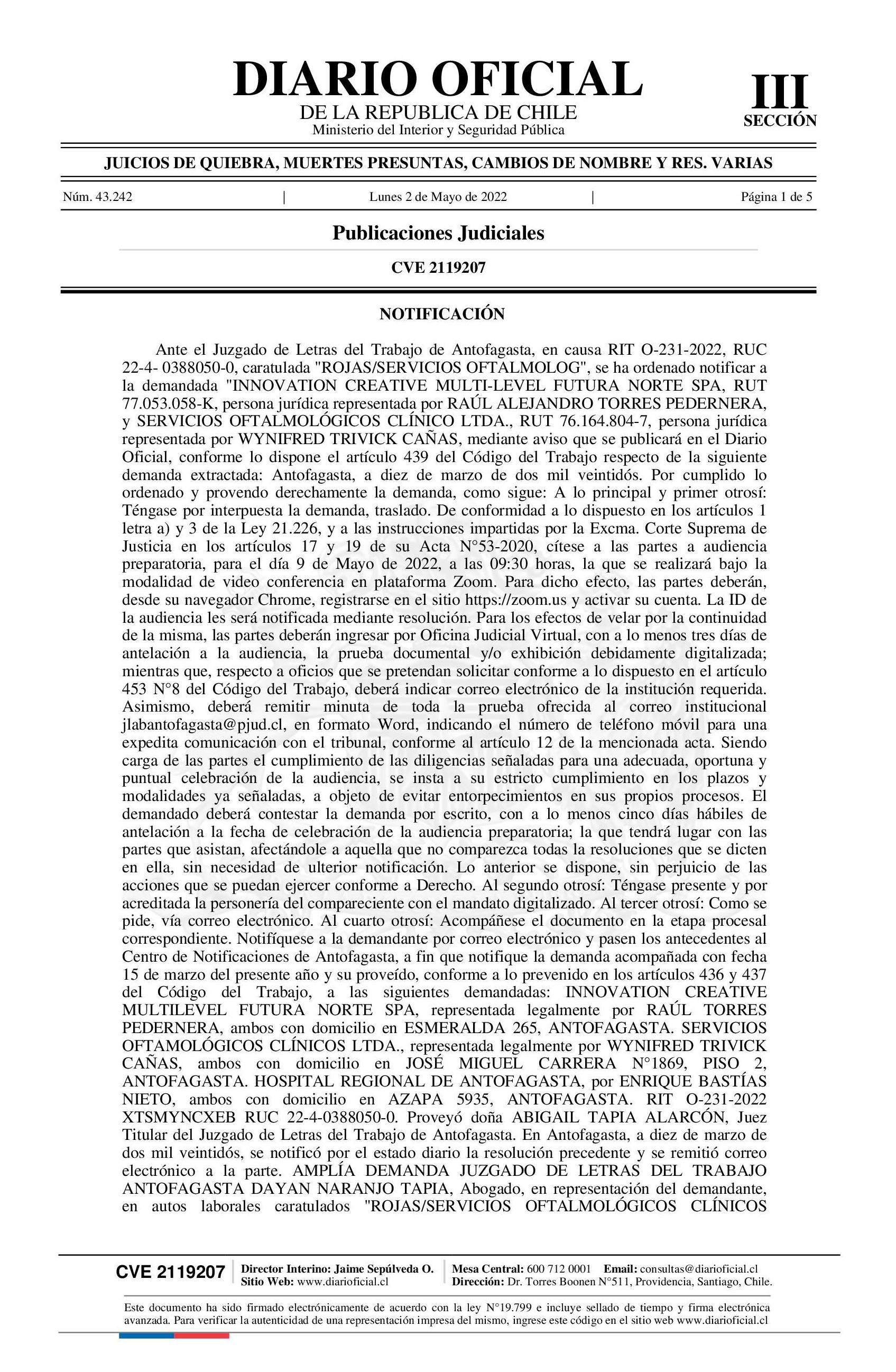 Notificación 02-05-2022 Diario Oficial Edición Electrónica |