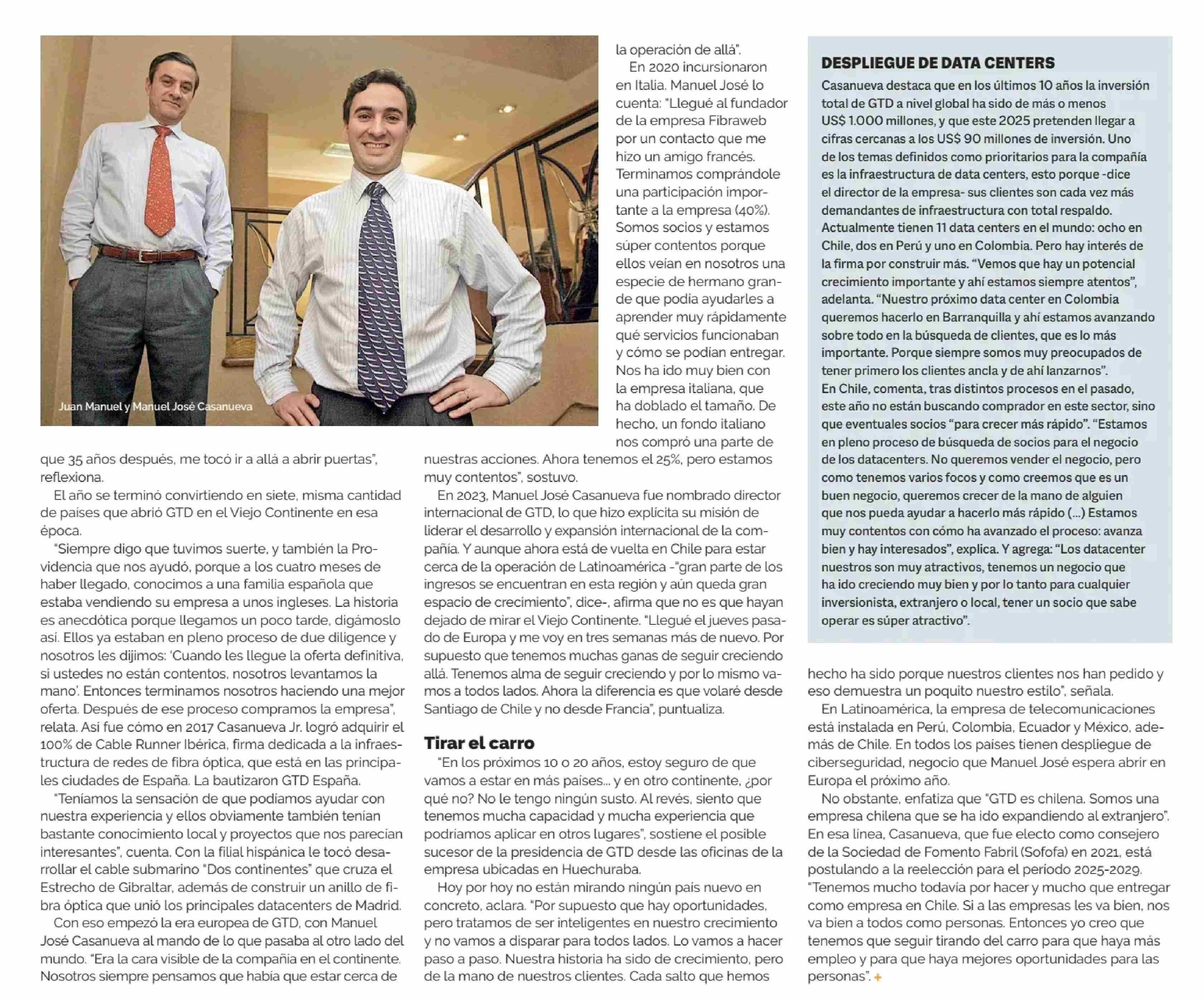 MANUEL JOSE CASANUEVA Y LA SUCESION DE GTD: “ES UN PROCESO QUE ESTAMOS TODOS CAMINANDO Y YA SE VERA SI CORRESPONDE HACER LA POSTA” 25-05-2025 Diario Financiero |