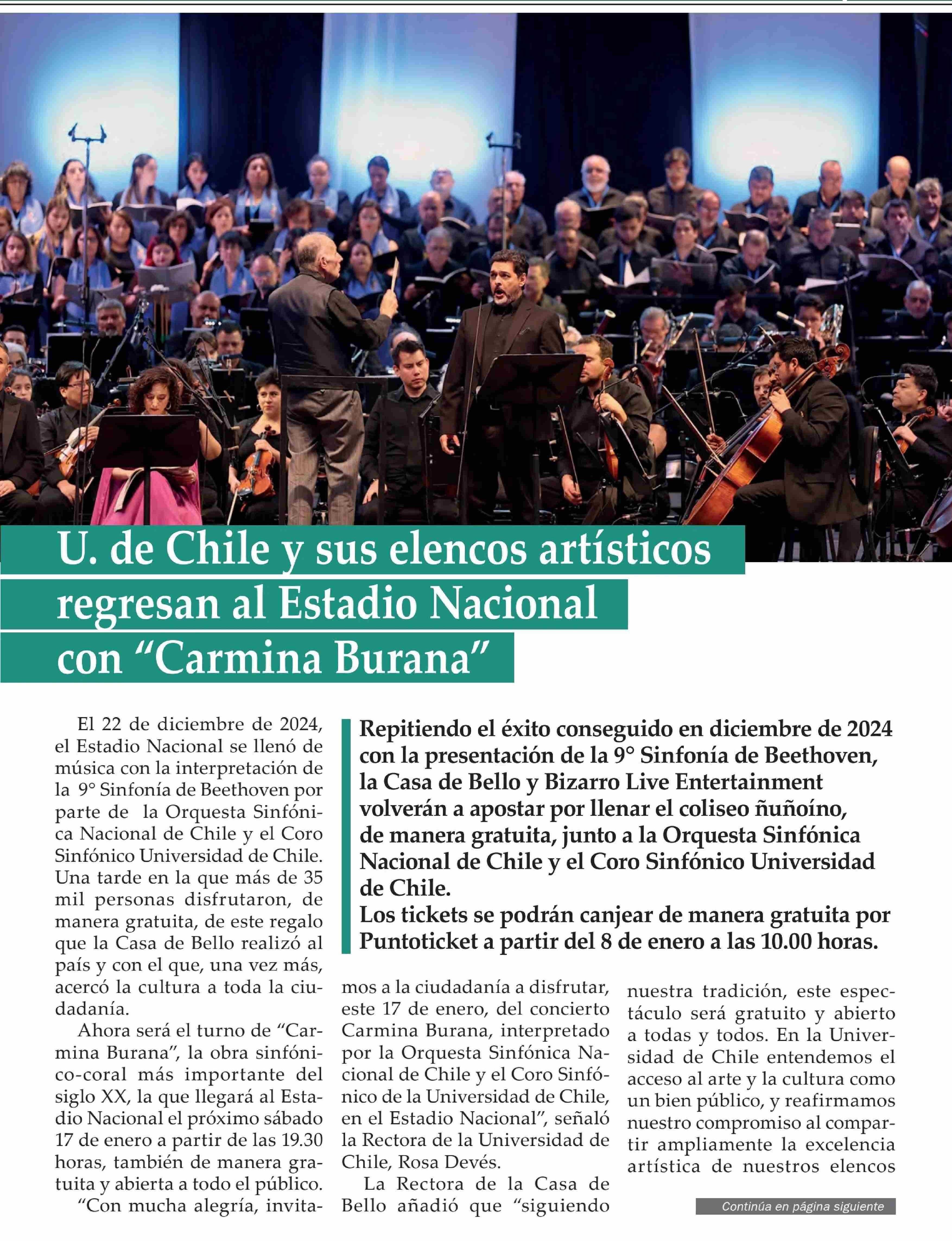 Título: U. de Chile y sus elencos artísticos regresan al Estadio Nacional con "Carmina Burana"