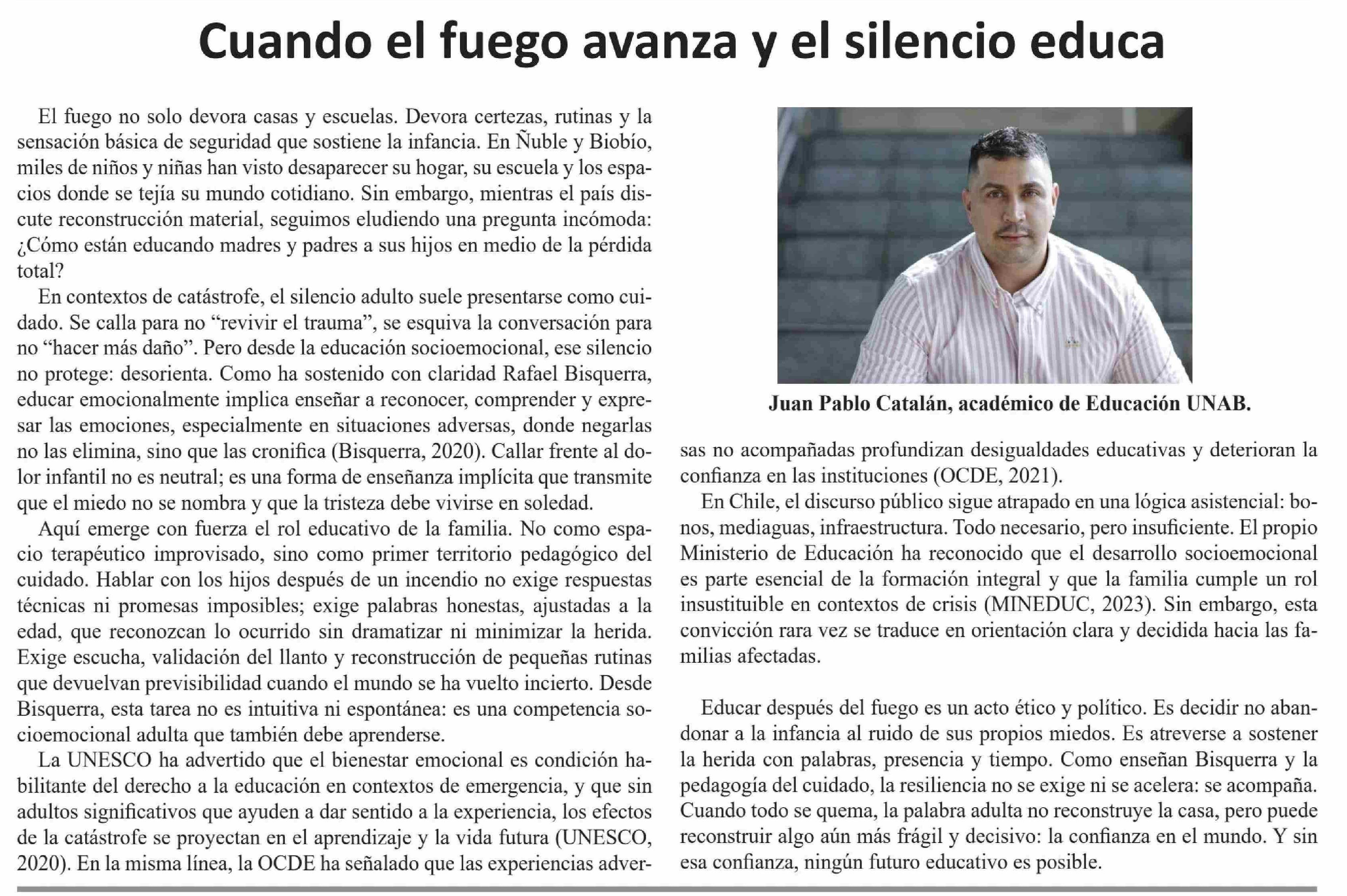 | Título: | Columnas de Opinión: Cuando el fuego avanza y el silencio educa |