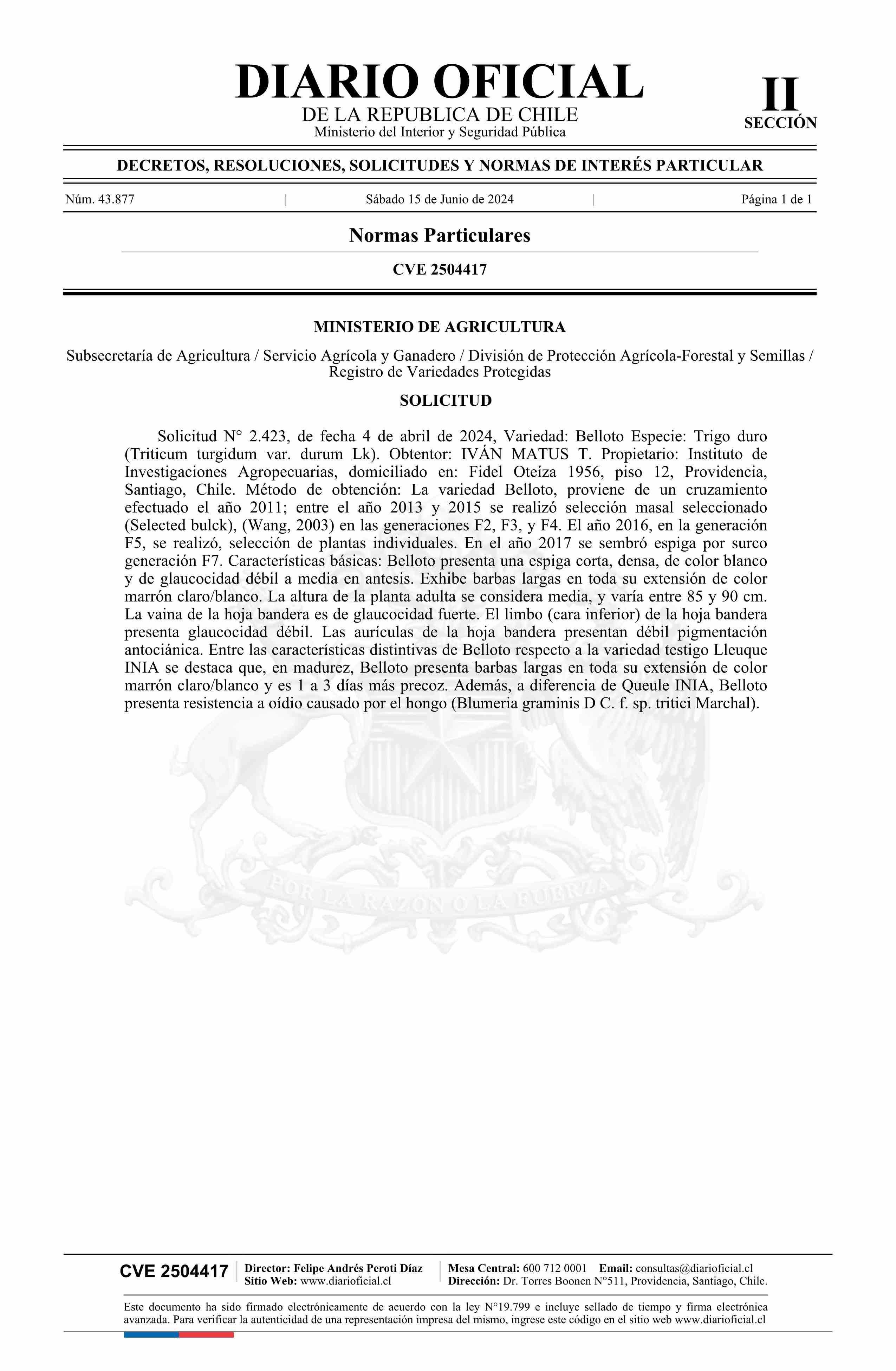 Solicitud número 2.423.- Matus T. Iván 15-06-2024 Diario Oficial Edición Electrónica |