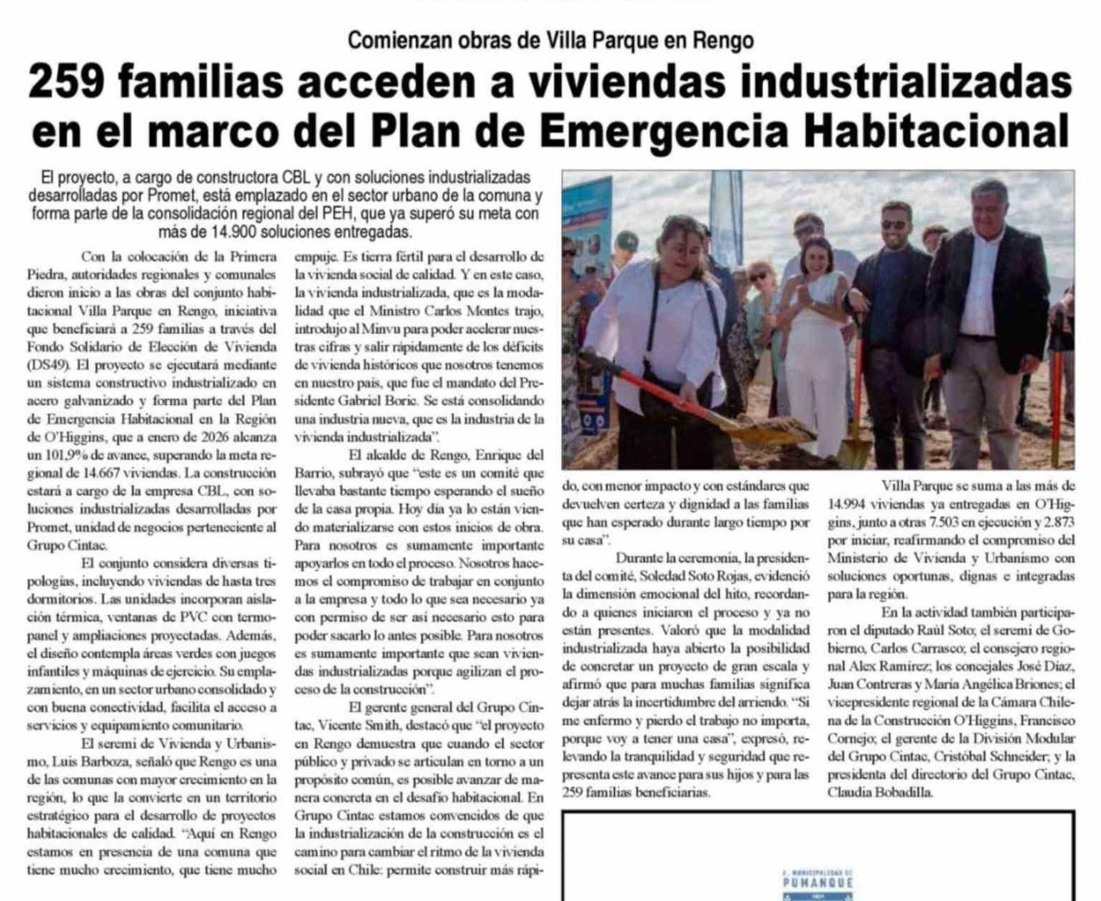259 Familias acceden a viviendas industrializadas en el marco del Plan de Emergencia Habitacional 03-03-2026 Diario VI Región |