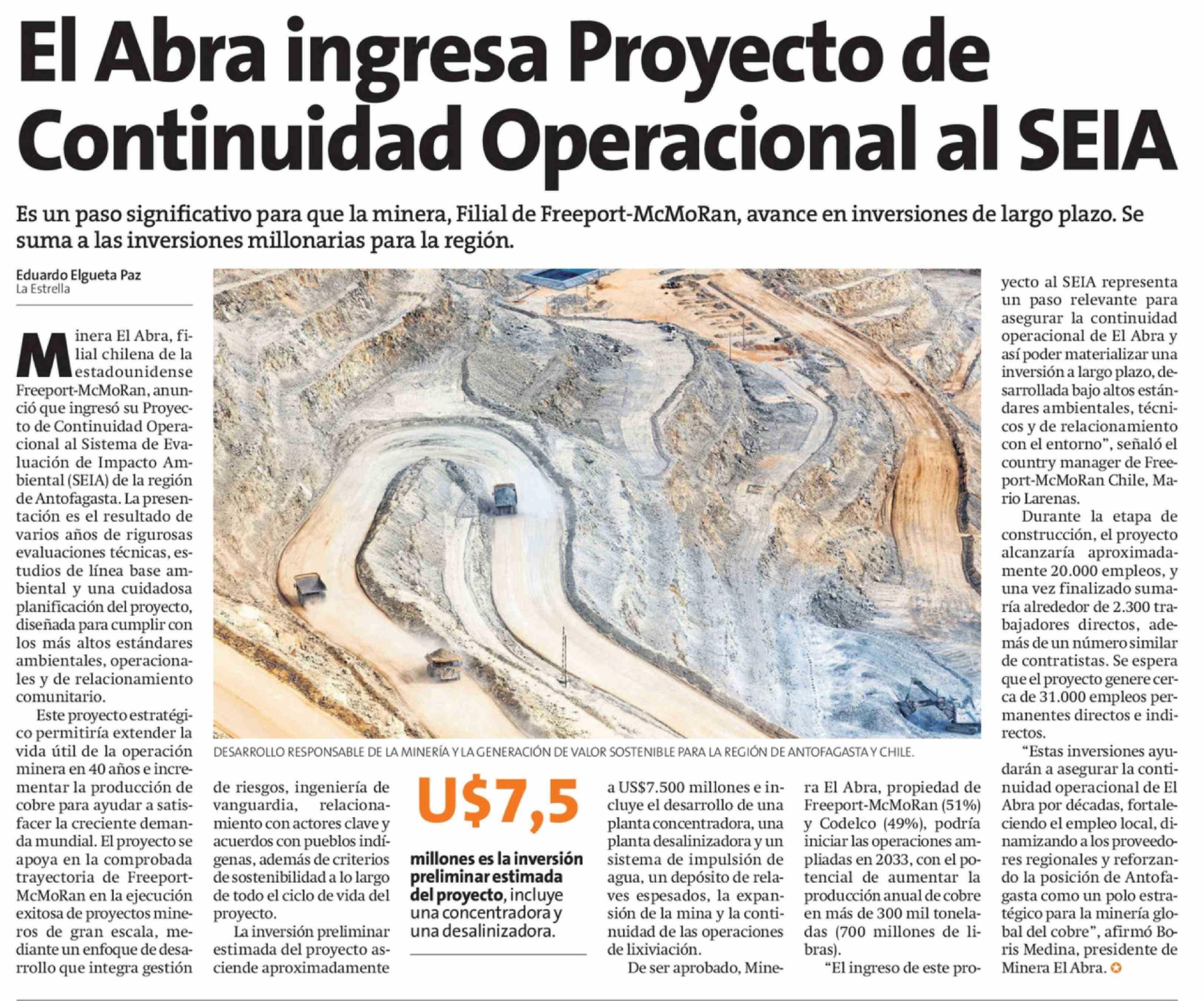 Título: El Abra ingresa Proyecto de Continuidad Operacional al SEIA