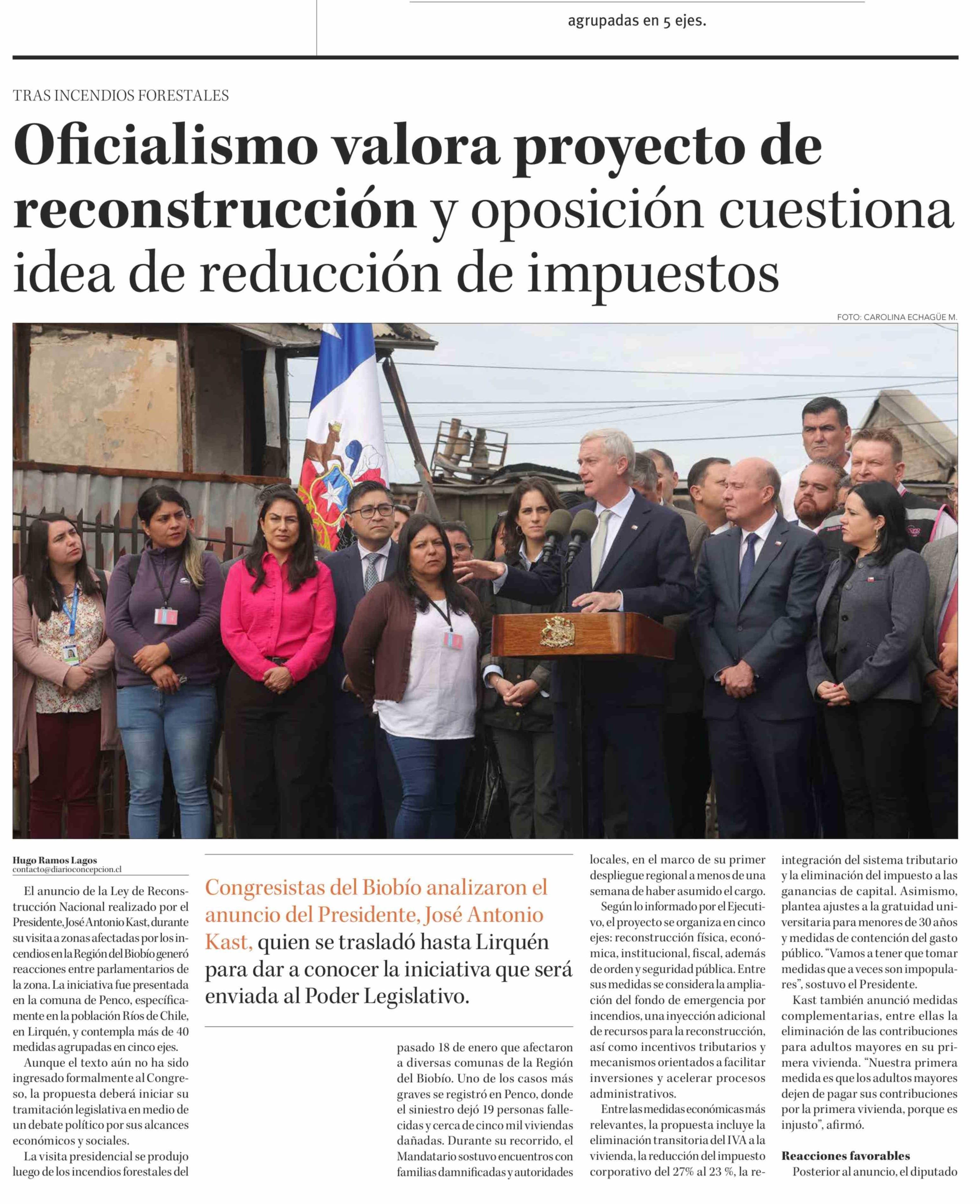 Título: Oficialismo valora proyecto de reconstrucción y oposición cuestiona idea de reducción de impuestos