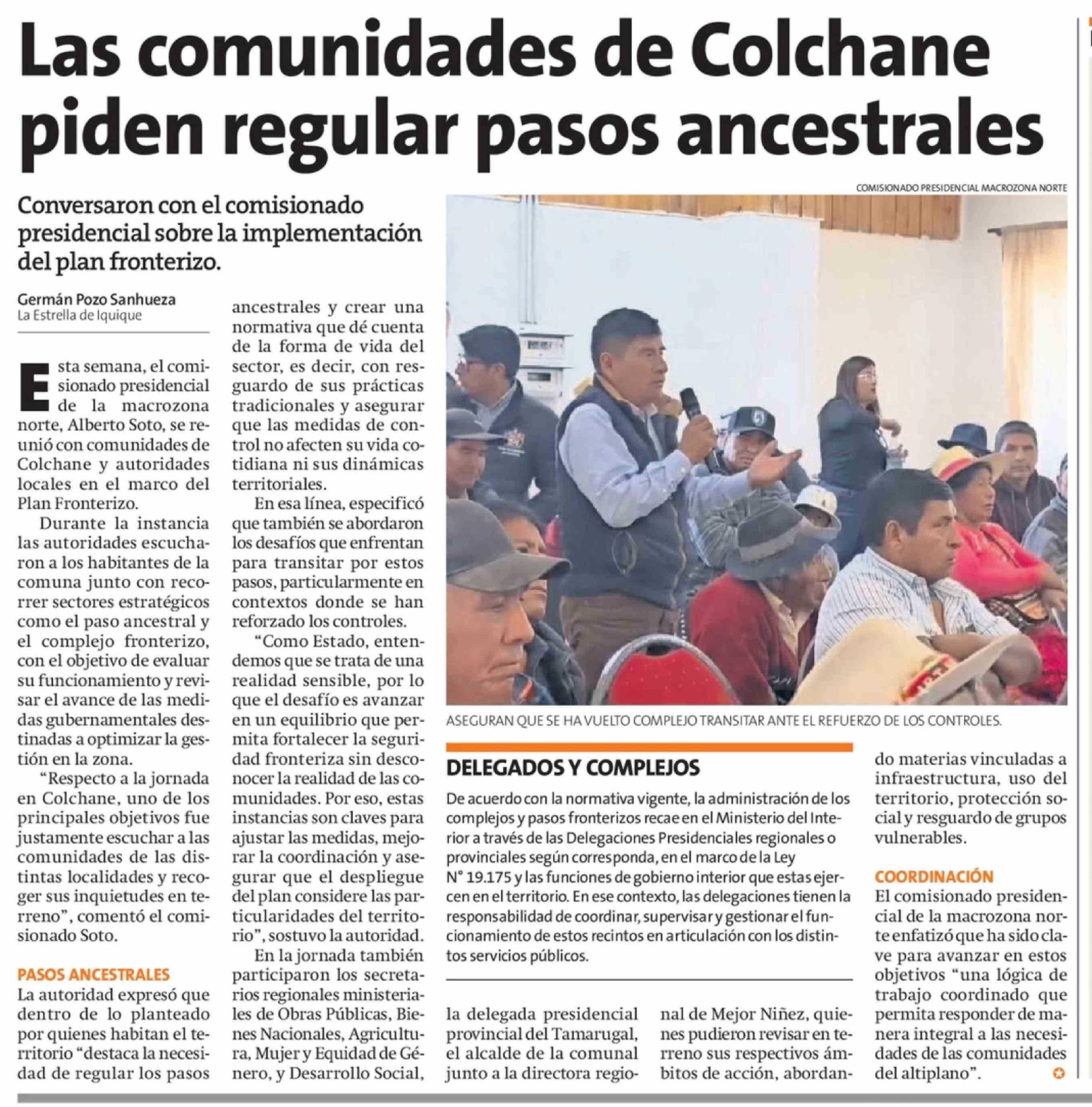 Las comunidades de Colchane piden regular pasos ancestrales 25-04-2026 La Estrella de Iquique |