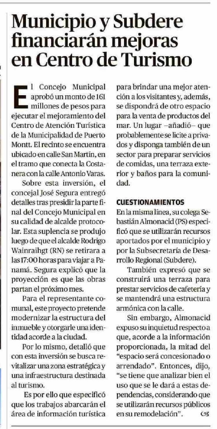 Municipio y Subdere financiarán mejoras en Centro de Turismo 27-01-2026 El Llanquihue |