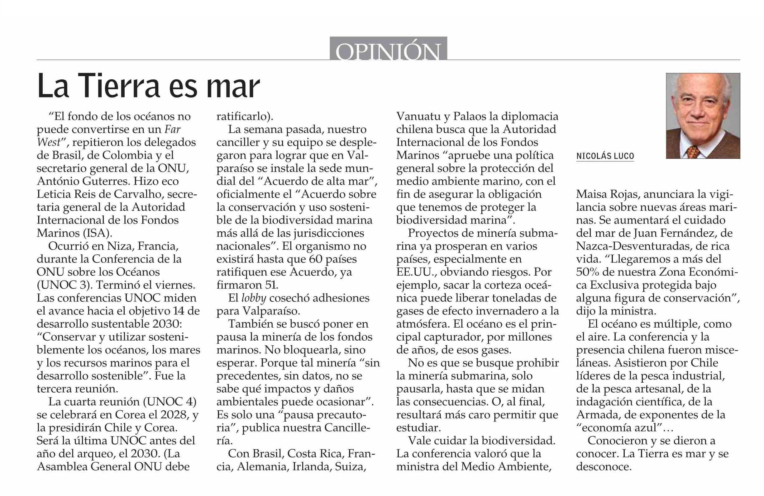 COLUMNAS DE OPINIÓN: La Tierra es mar 16-06-2025 El Mercurio |