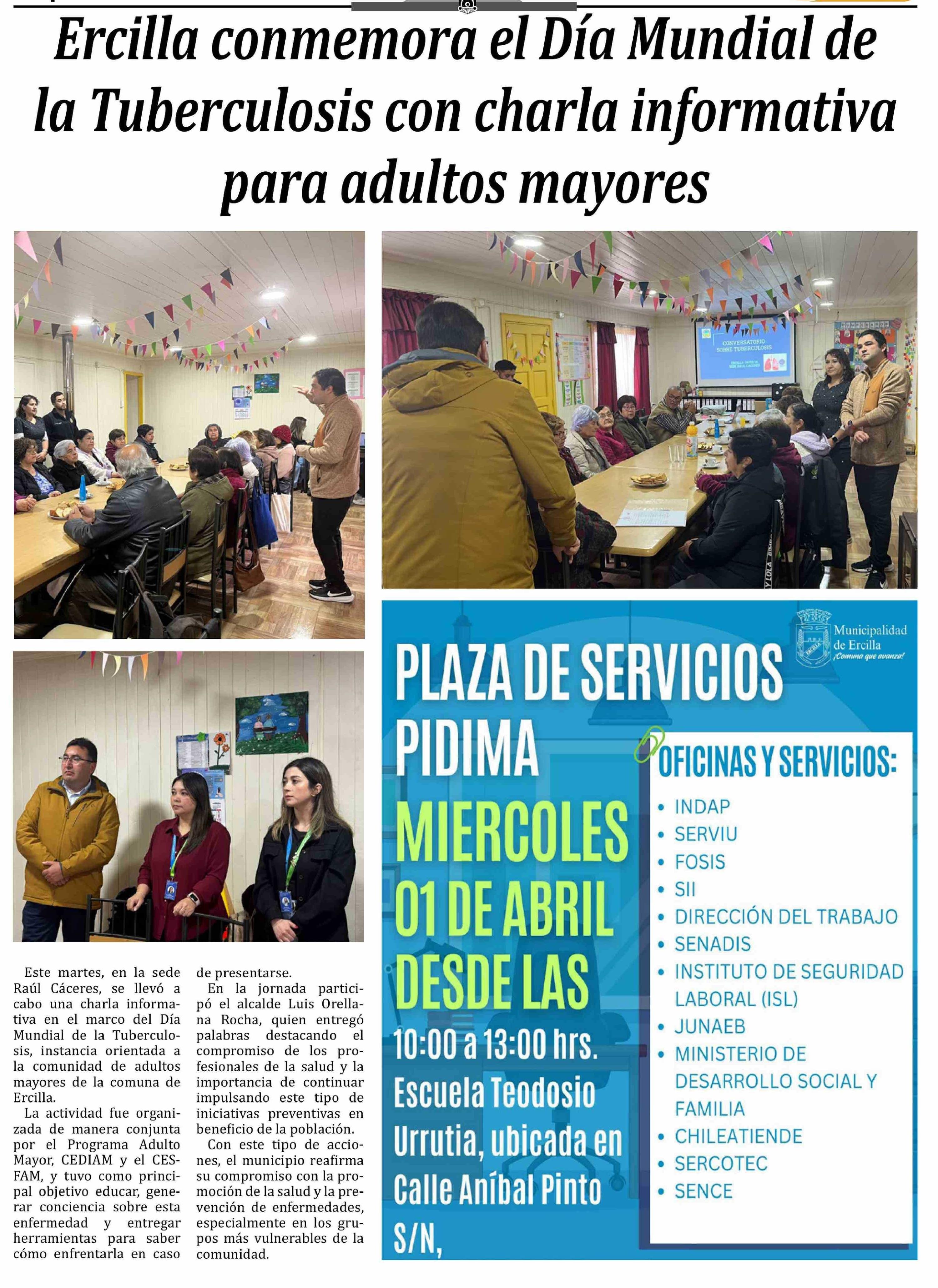 | Título: | Ercilla conmemora el Día Mundial de la Tuberculosis con charla informativa para adultos mayores |