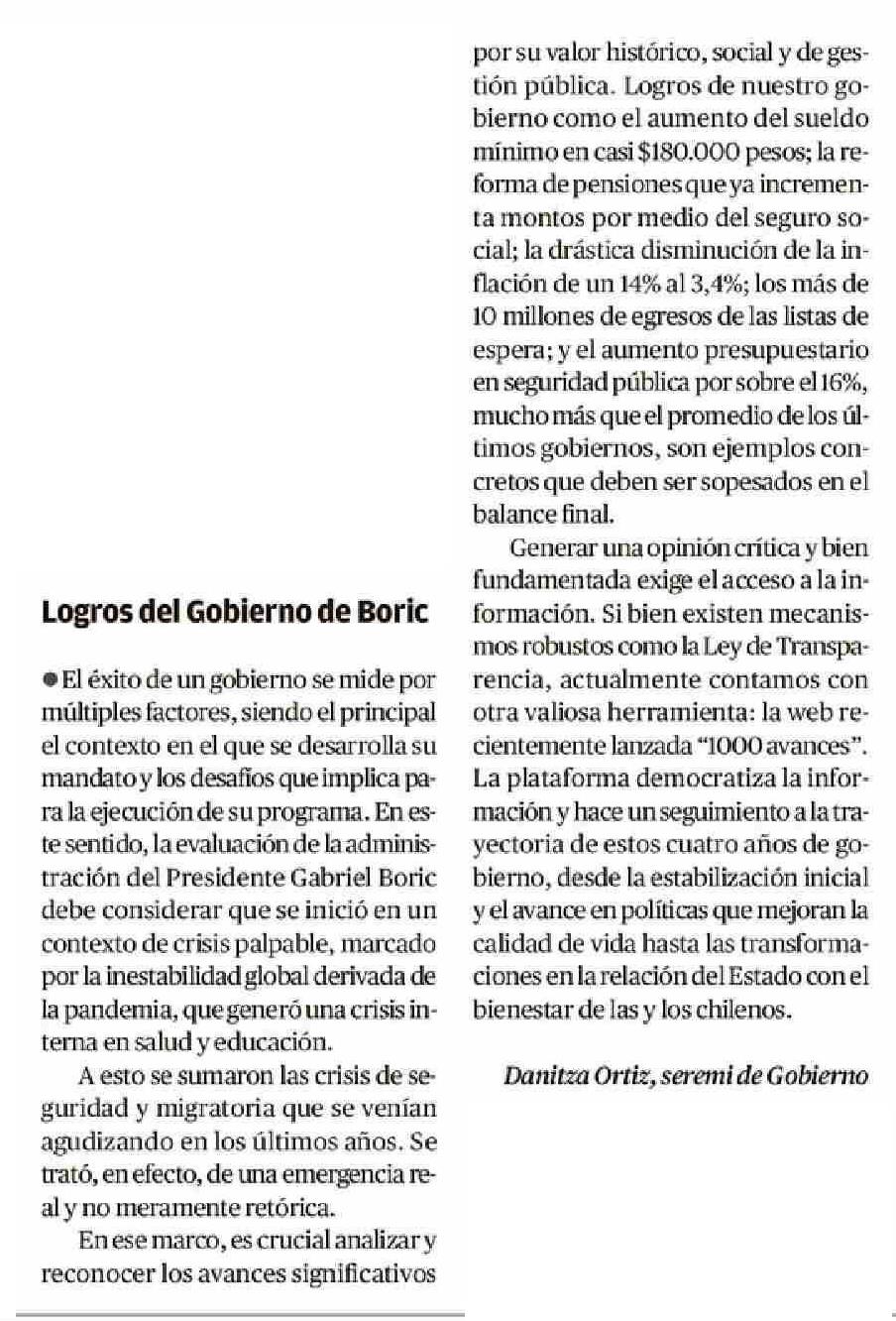 Cartas: Logros del Gobierno de Boric