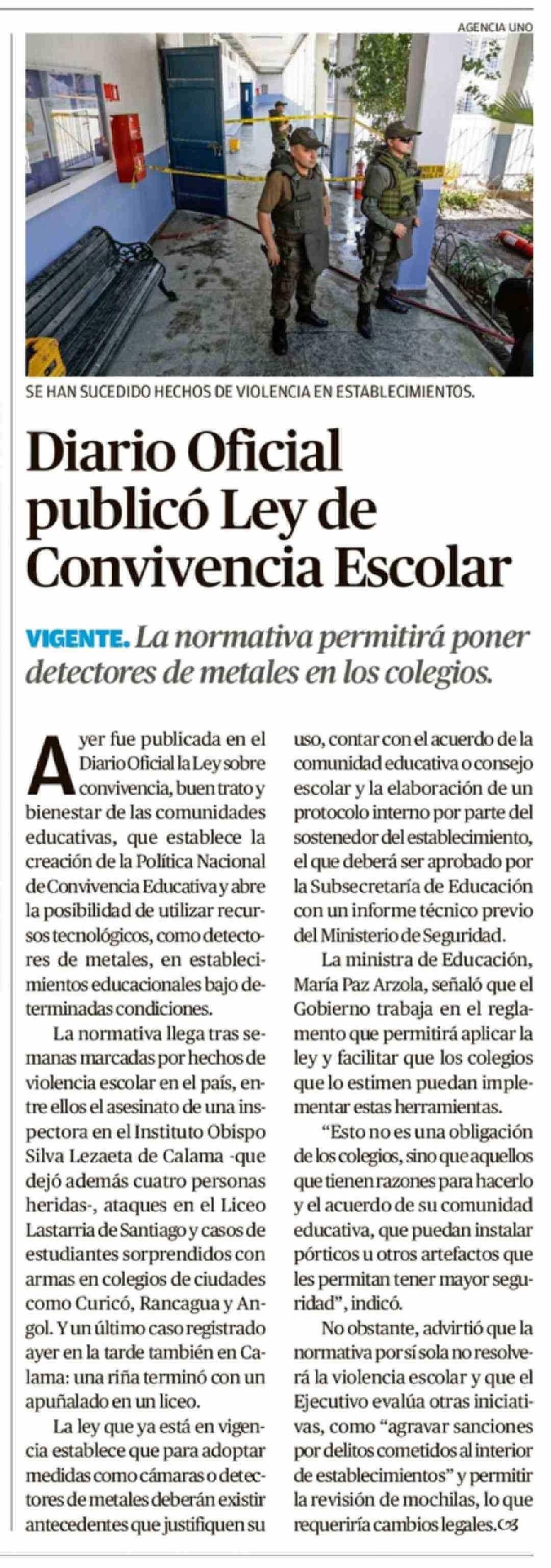 Diario Oficial publicó Ley de Convivencia Escolar 02-04-2026 Crónica de Chillán |