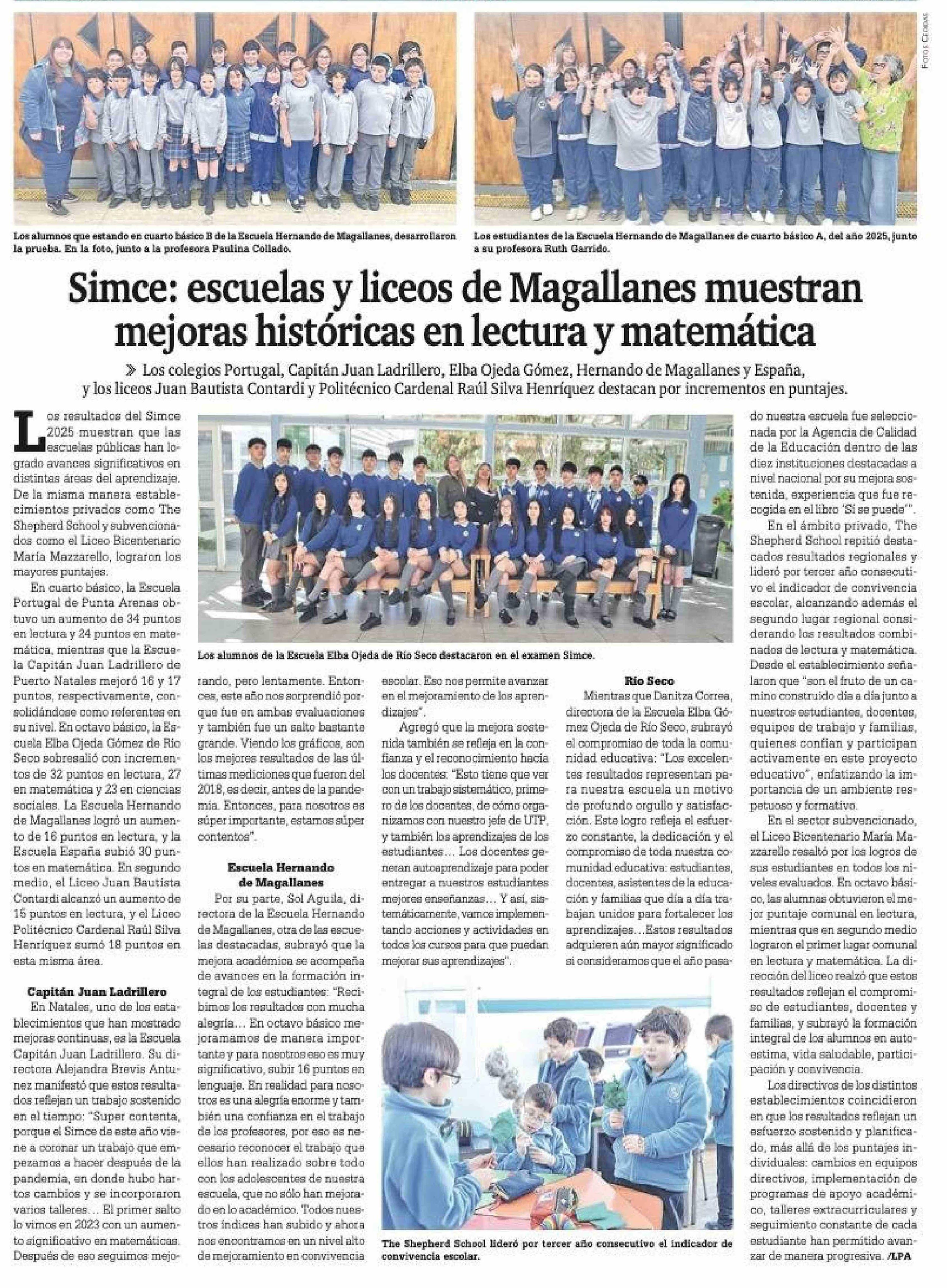 Simce: escuelas y liceos de Magallanes muestran mejoras históricas en lectura y matemática 10-03-2026 La Prensa Austral |