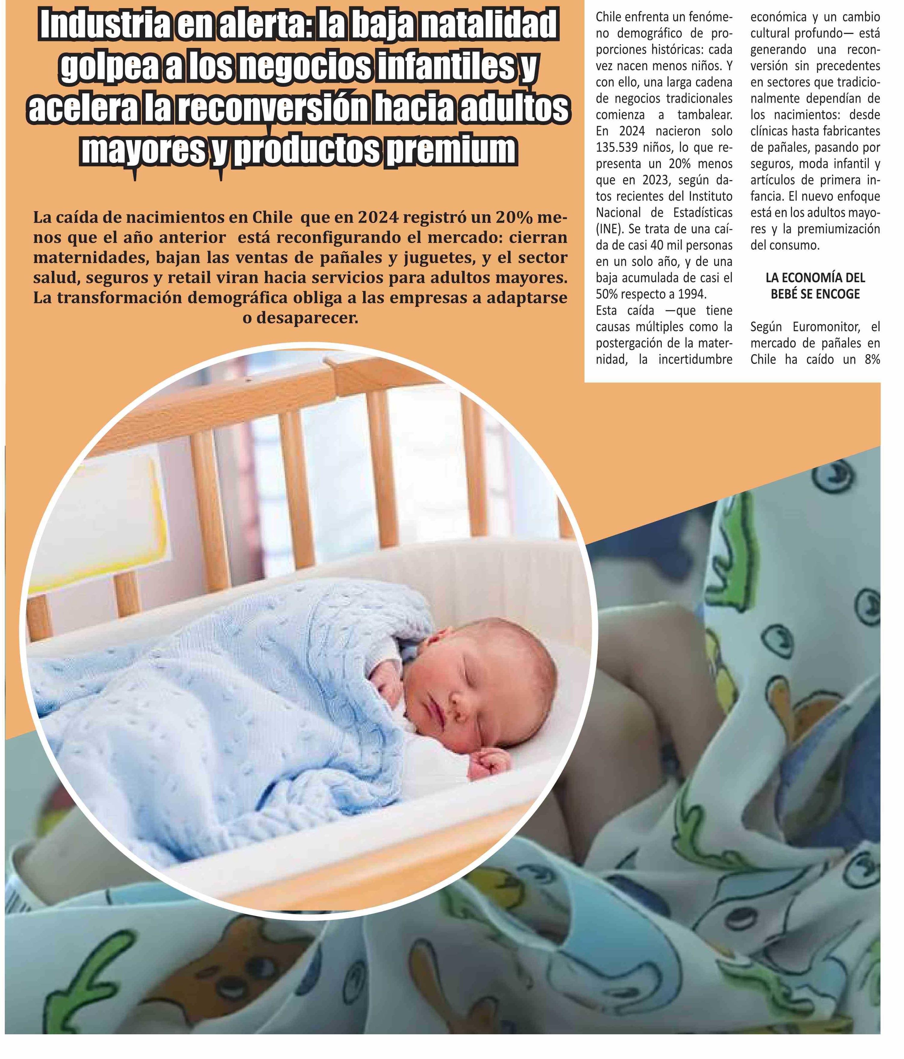 | Título: | Industria en alerta: la baja natalidad Industria en alerta: la baja natalidad golpea a los negocios infantiles y golpea a los negocios infantiles y acelera la reconversión hacia adultos acelera la reconversión hacia adultos mayores y productos premium mayores y productos premium |