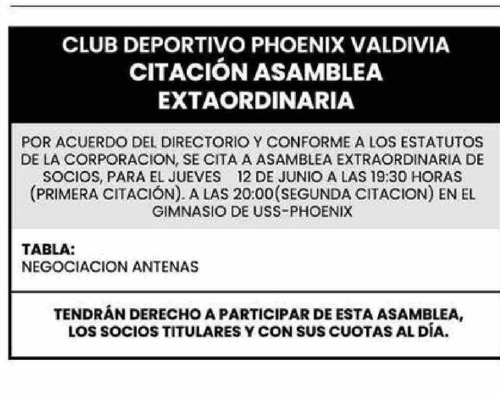 | Título: | CLUB DEPORTIVO PHOENIX VALDIVIA |