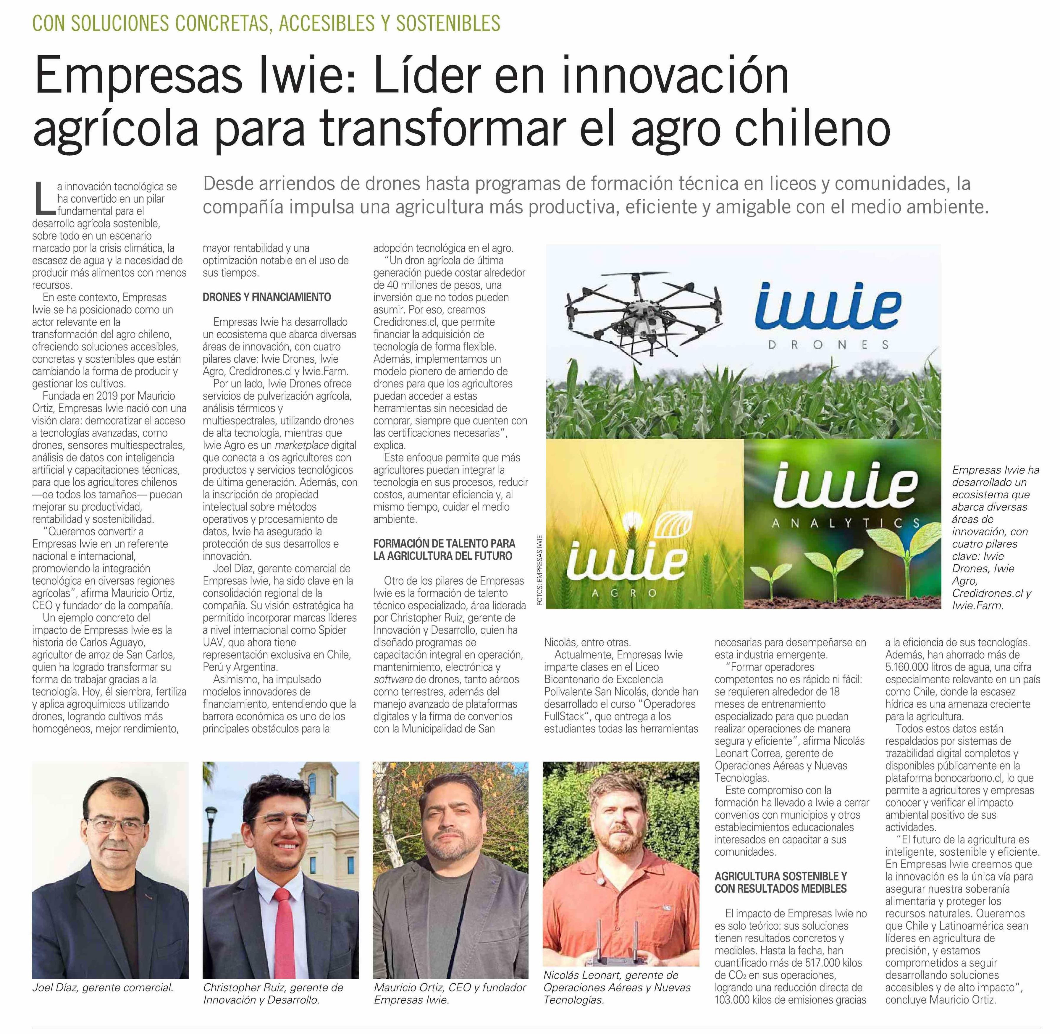 Empresas Iwie: Líder en innovación agrícola para transformar el agro chileno 31-05-2025 El Mercurio |