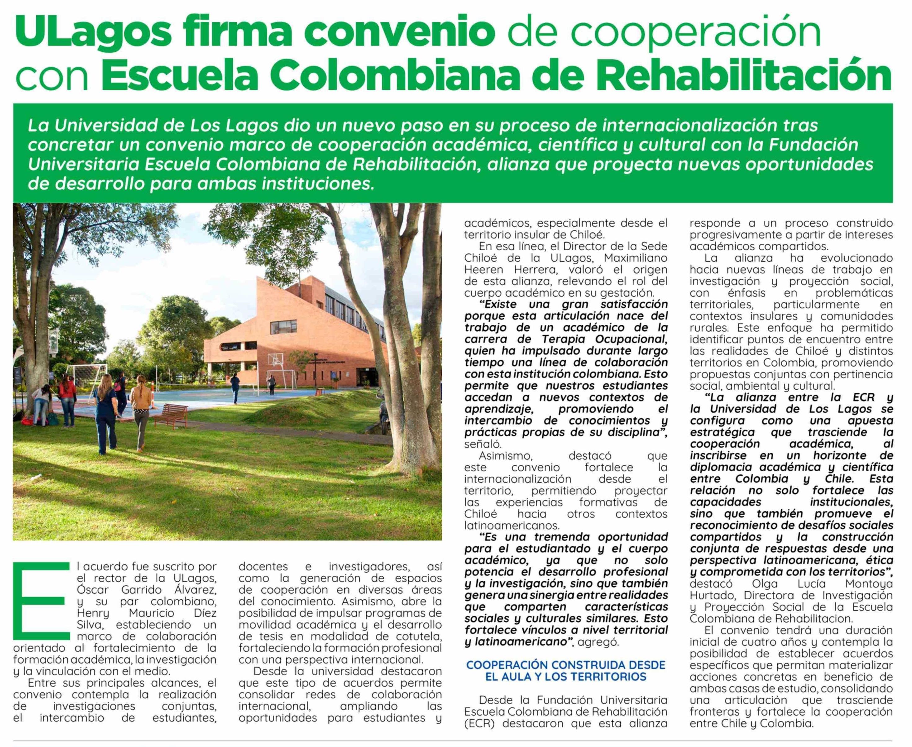 Título: ULagos firma convenio de cooperación con Escuela Colombiana de Rehabilitación