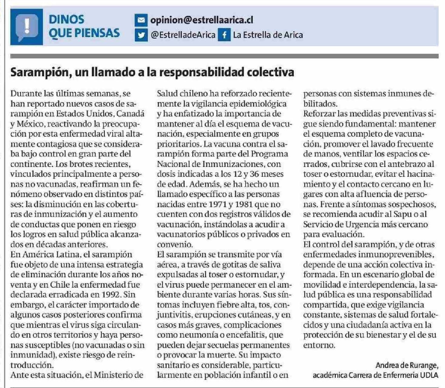 Sarampión, un llamado a la responsabilidad colectiva 03-06-2025 La Estrella de Arica |