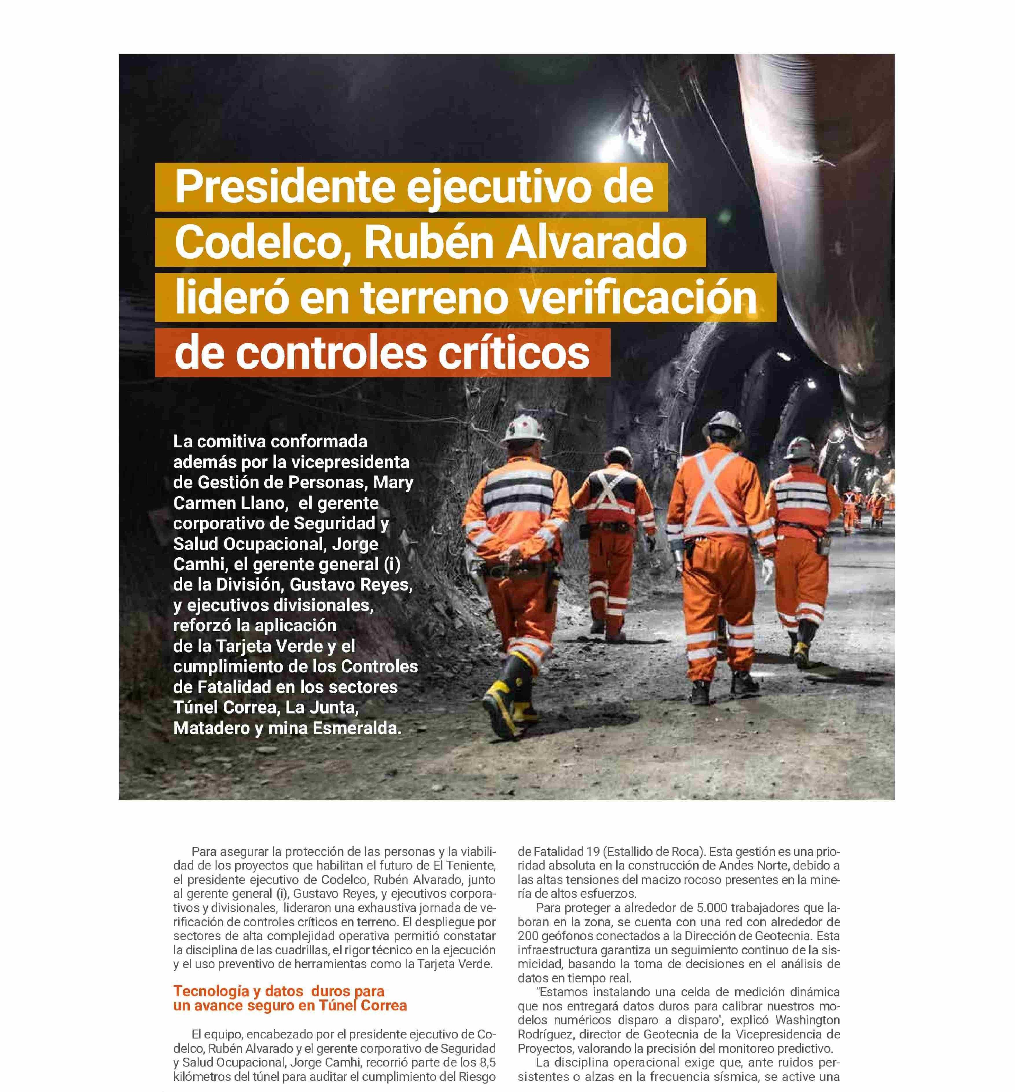 | Título: | Presidente ejecutivo de Codelco, Rubén Alvarado lideró en terreno verificación de controles críticos |