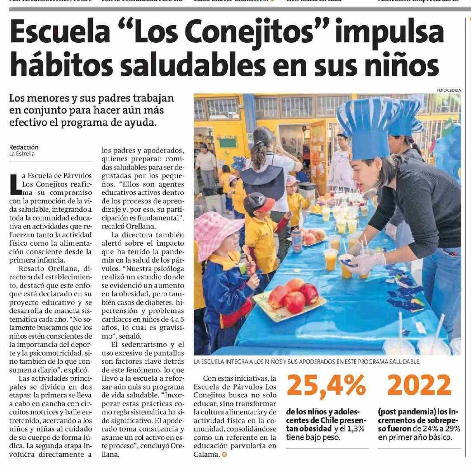 Escuela “Los Conejitos” impulsa hábitos saludables en sus niños 09-05-2025 La Estrella de Antofagasta |