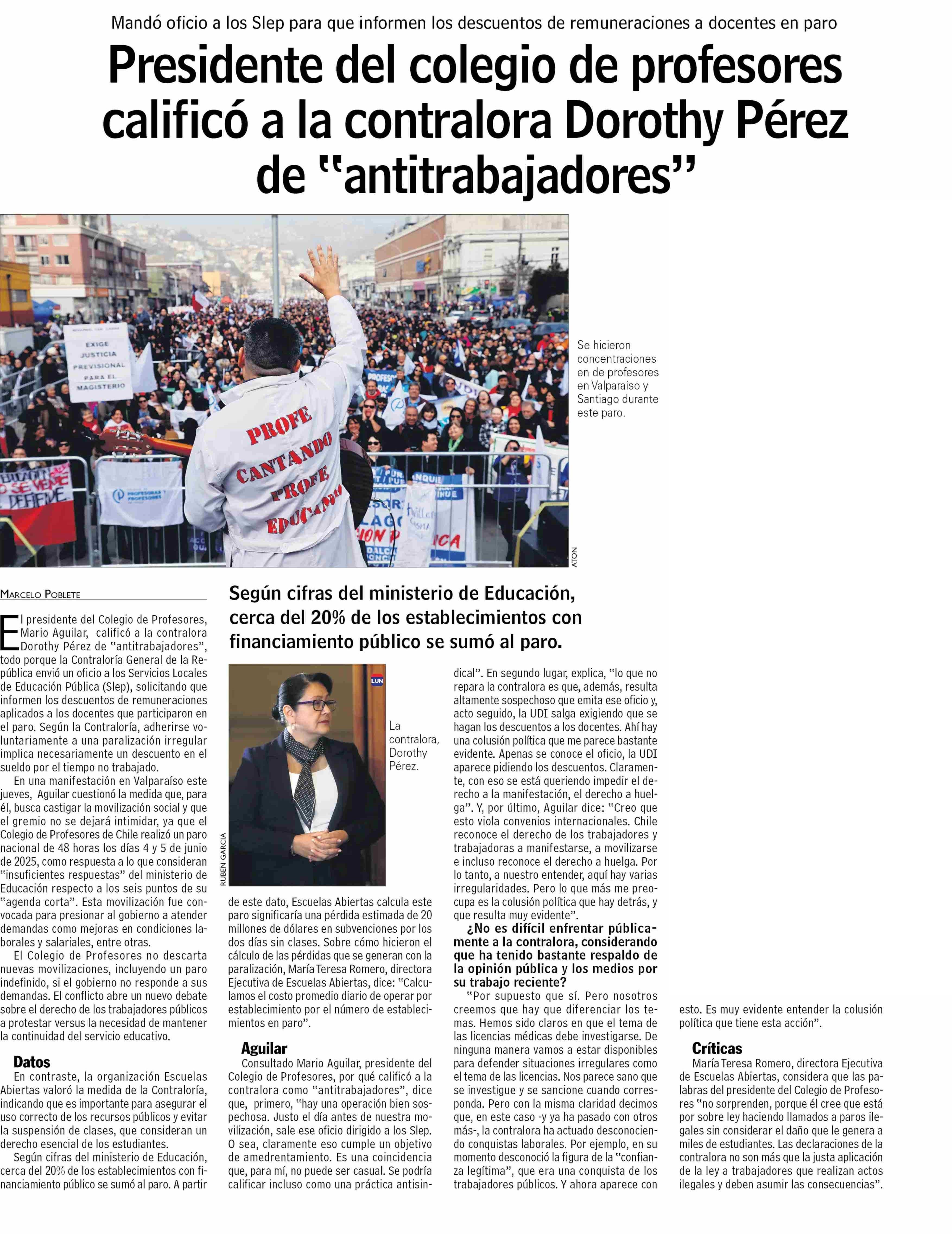 Presidente del colegio de profesores calificó a la contralora Dorothy Pérez de “antitrabajadores”” 06-06-2025 Las Últimas Noticias |