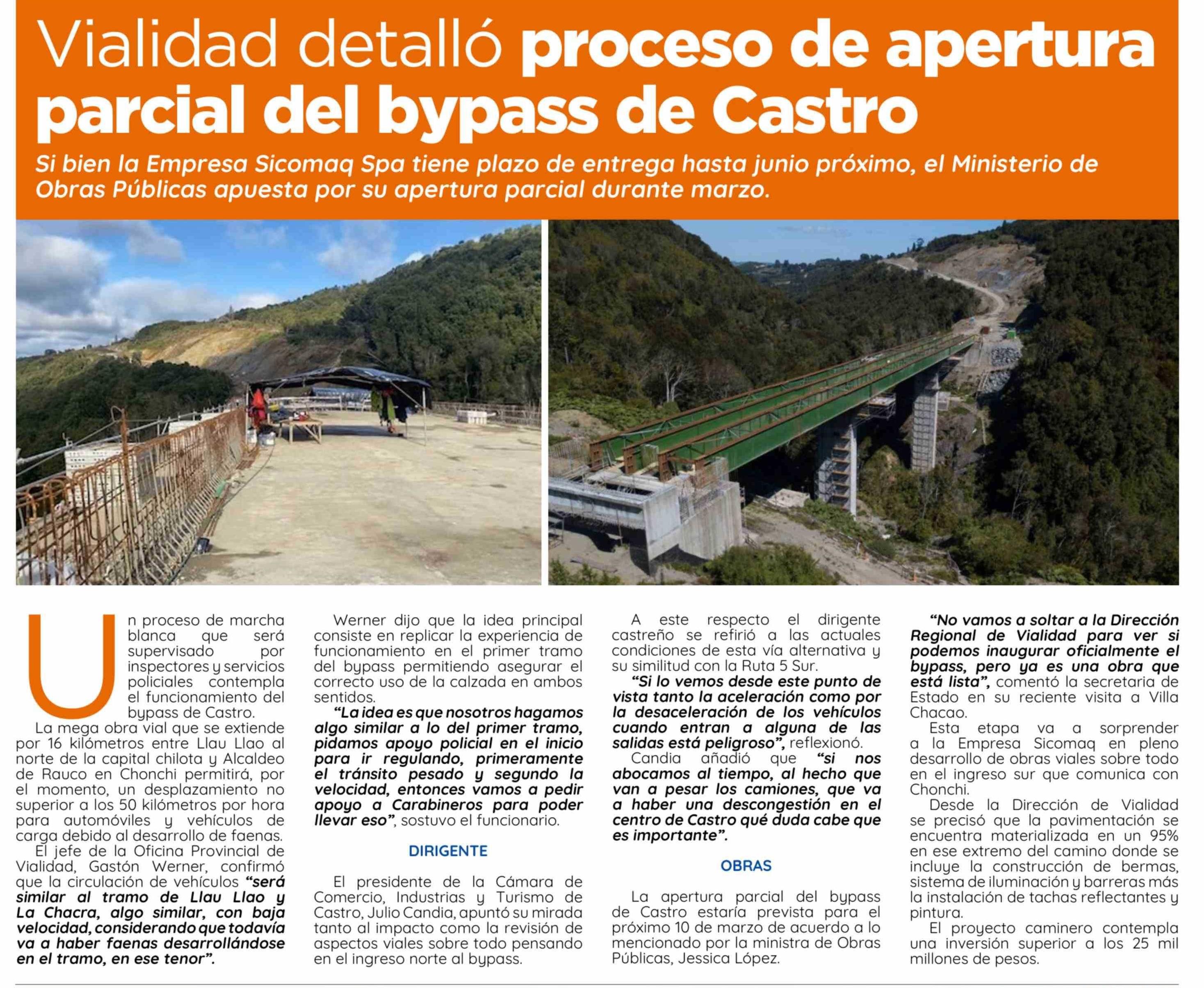 | Título: | Vialidad detalló proceso de apertura parcial del bypass de Castro |