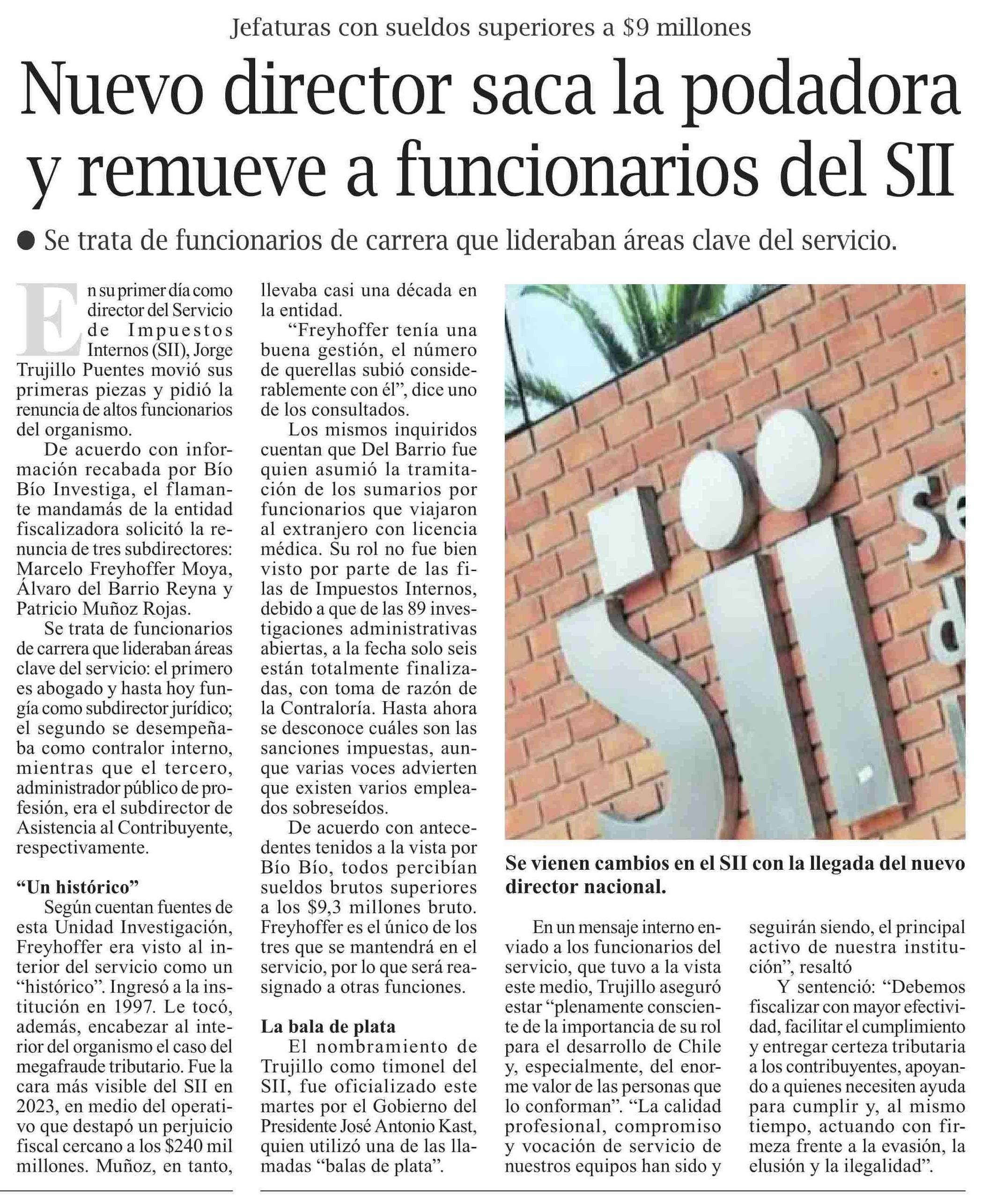 | Título: | Nuevo director saca la podadora y remueve a funcionarios del SII |