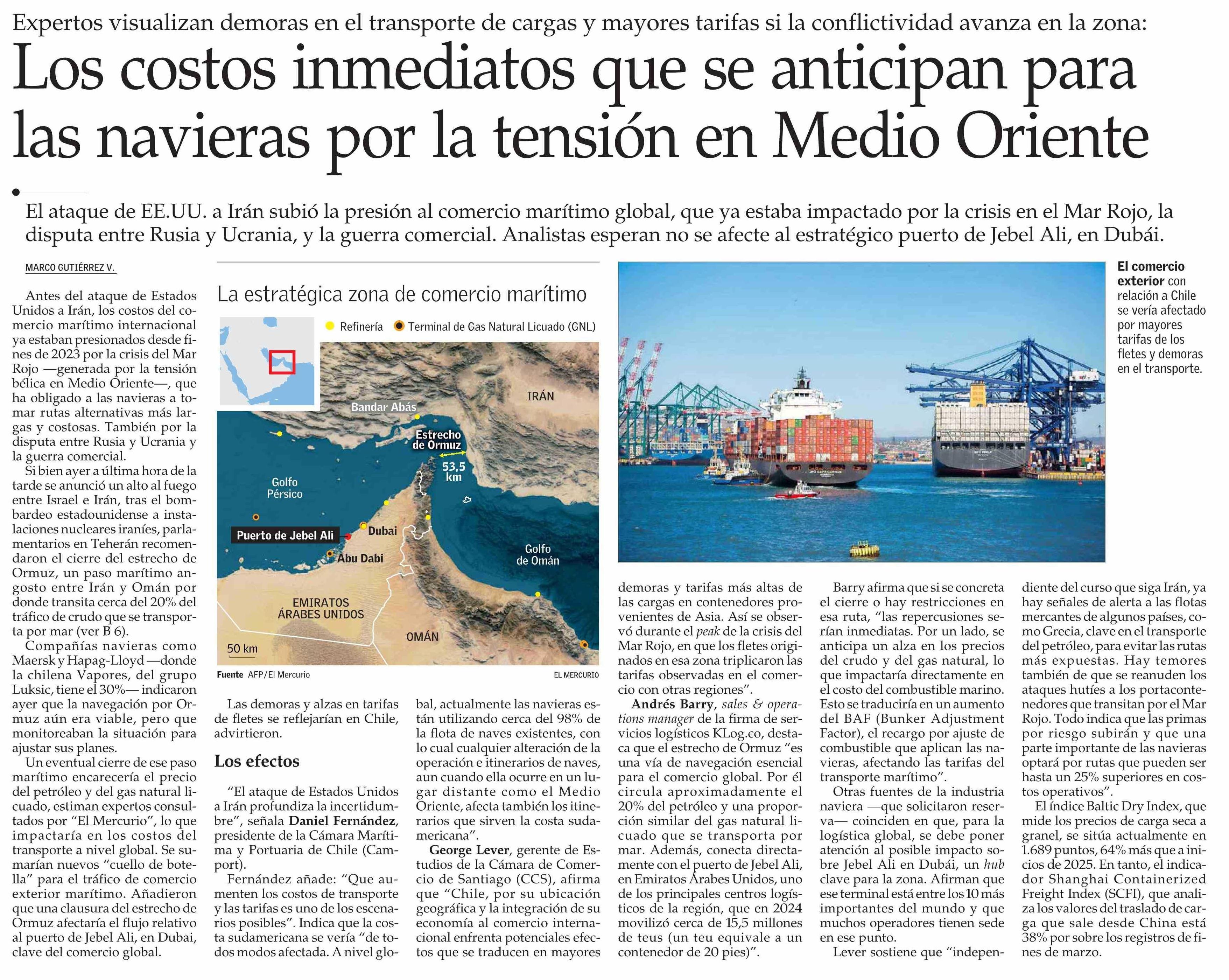 Los costos inmediatos que se anticipan para las navieras por la tensión en Medio Oriente 24-06-2025 El Mercurio |