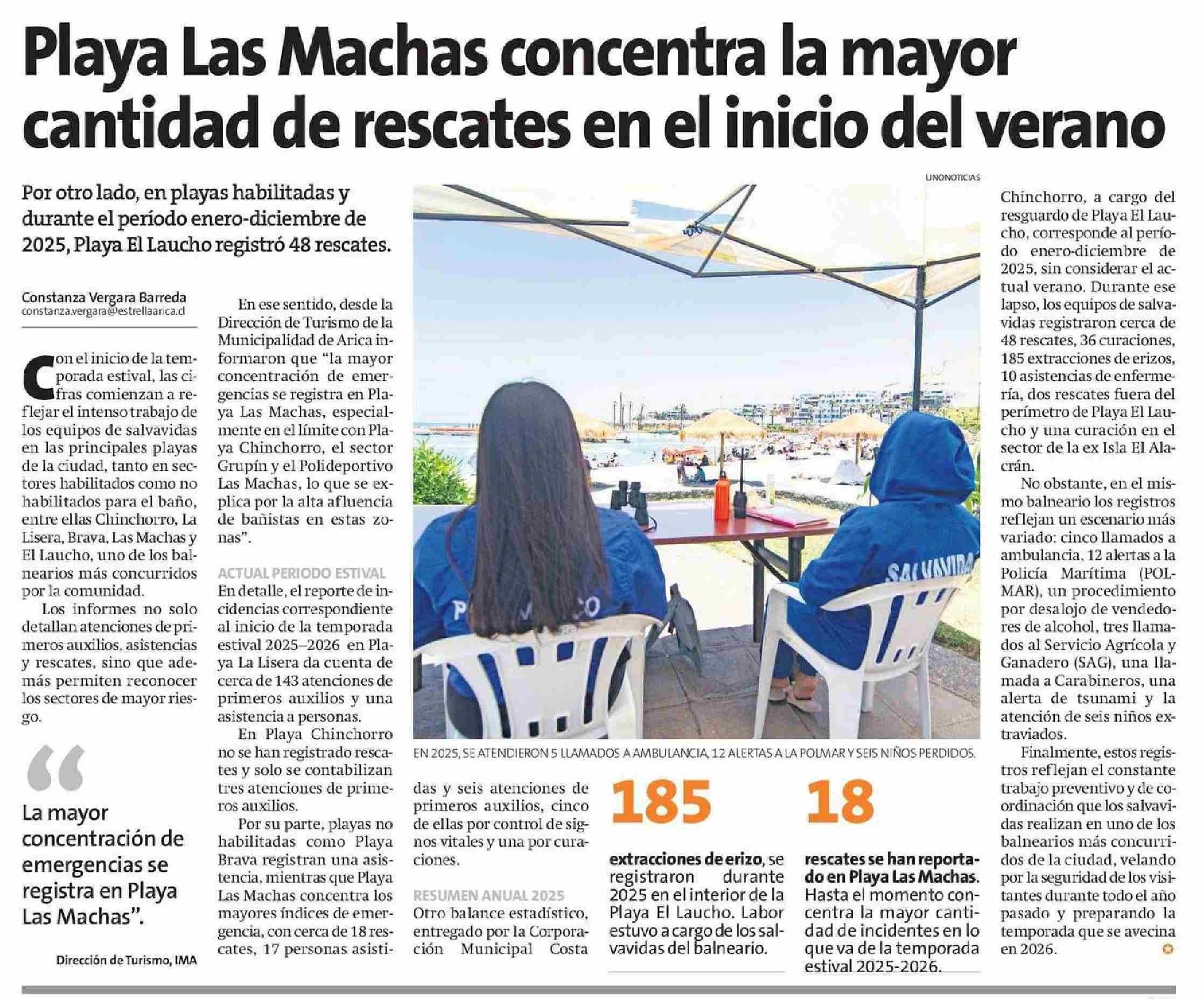 | Título: | Playa Las Machas concentra la mayor cantidad de rescates en el inicio del verano |