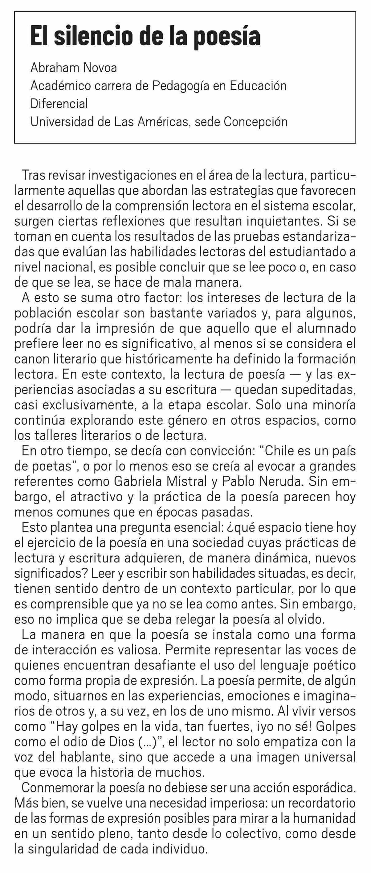 COLUMNAS DE OPINIÓN: El silencio de la poesía 30-05-2025 El Día |