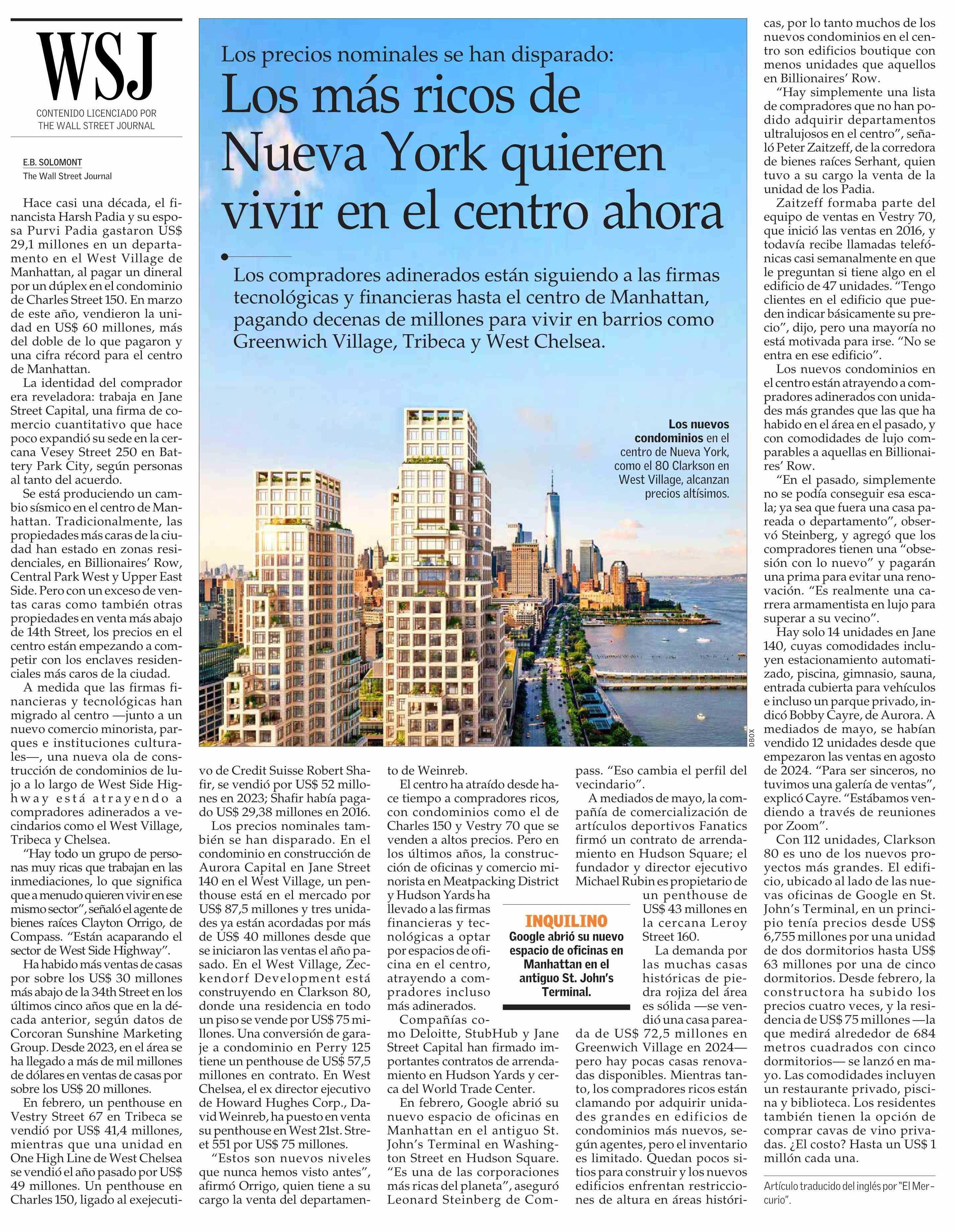 Los más ricos de Nueva York quieren vivir en el centro ahora 09-06-2025 El Mercurio |
