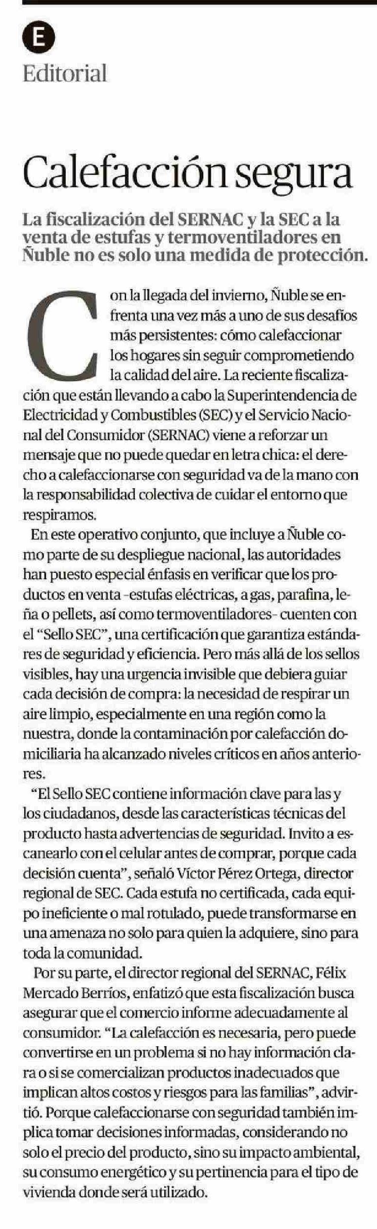 Editorial: Calefacción segura 07-06-2025 Crónica de Chillán |