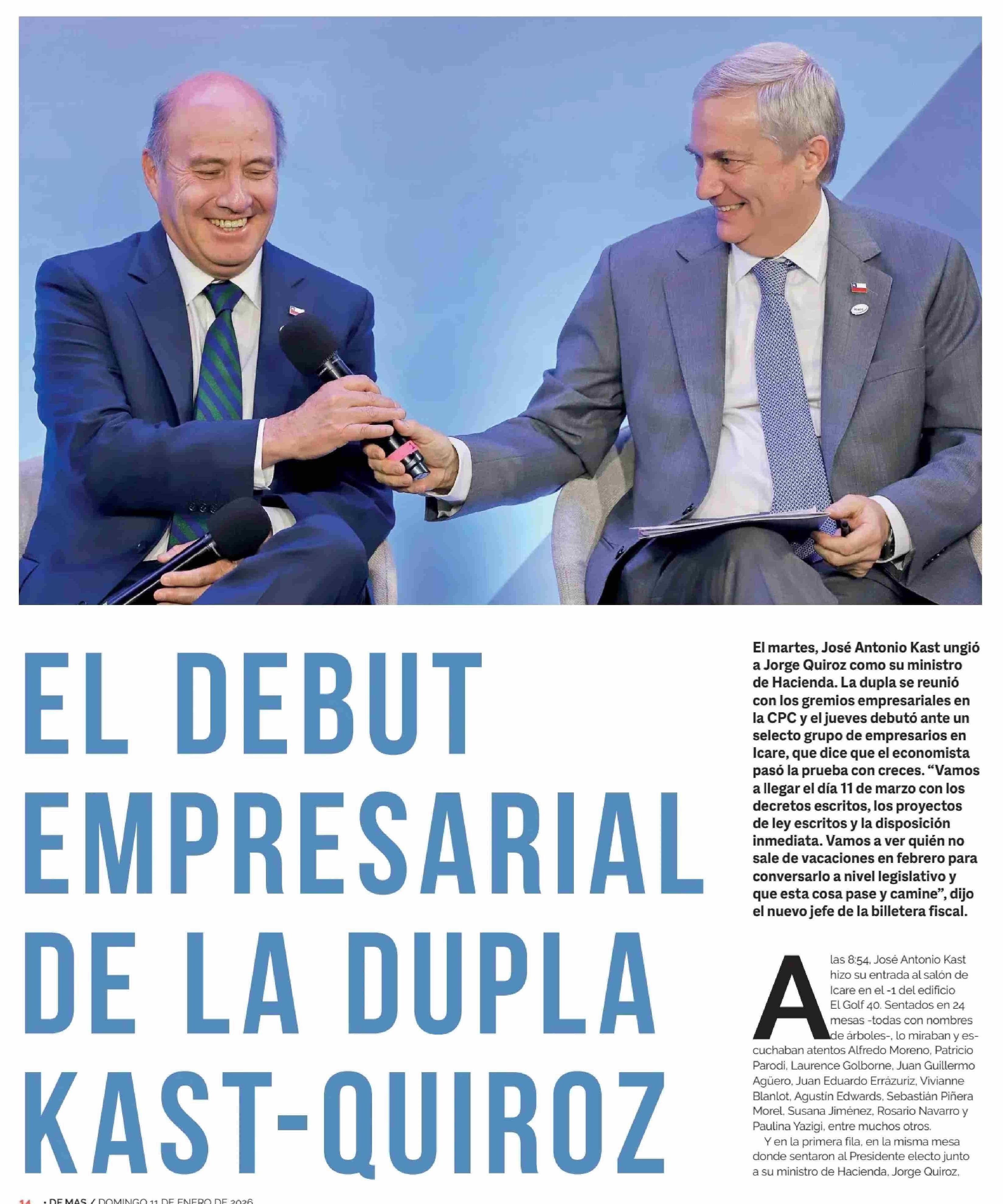 EL DEBUT EMPRESARIAL DE LA DUPLA KAST-QUIROZ 11-01-2026 Diario Financiero |