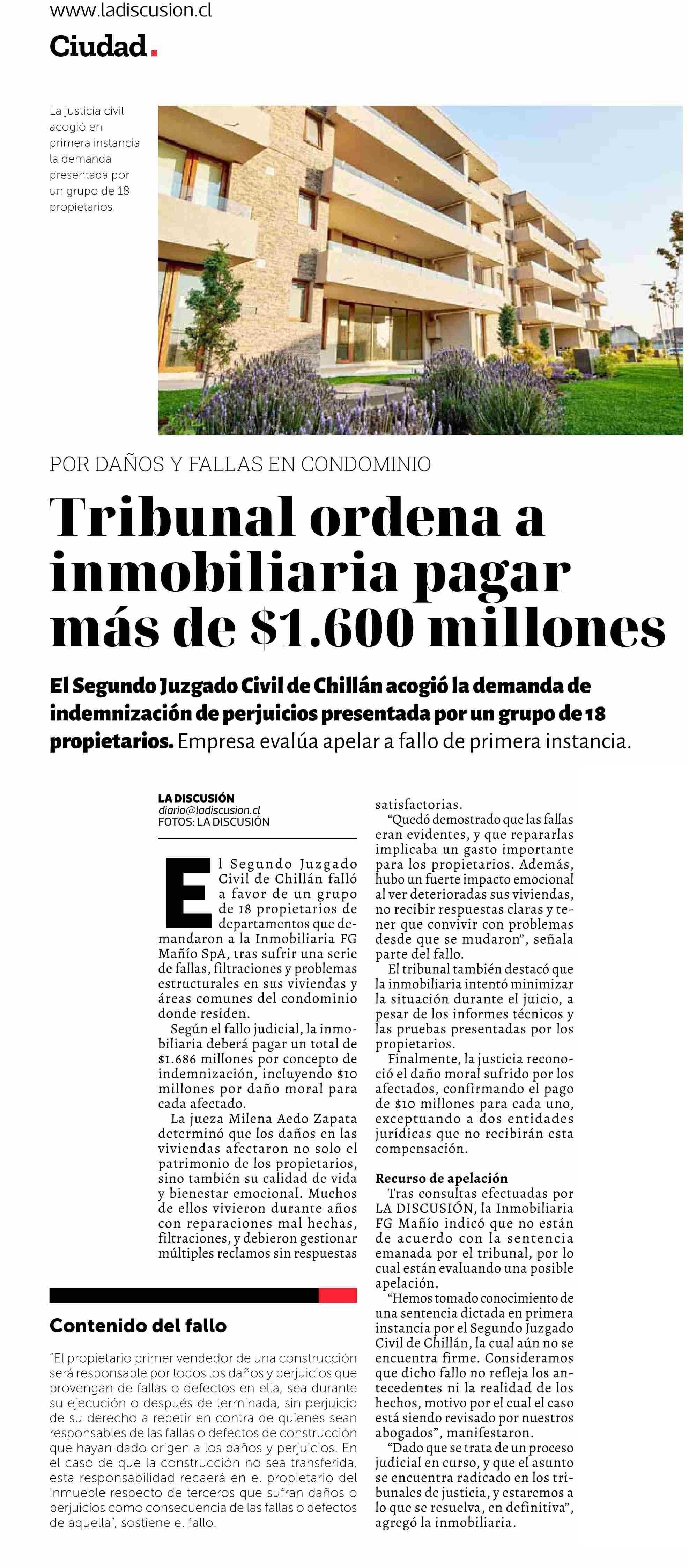 Tribunal ordena a inmobiliaria pagar más de $1.600 millones 19-05-2025 La Discusión |