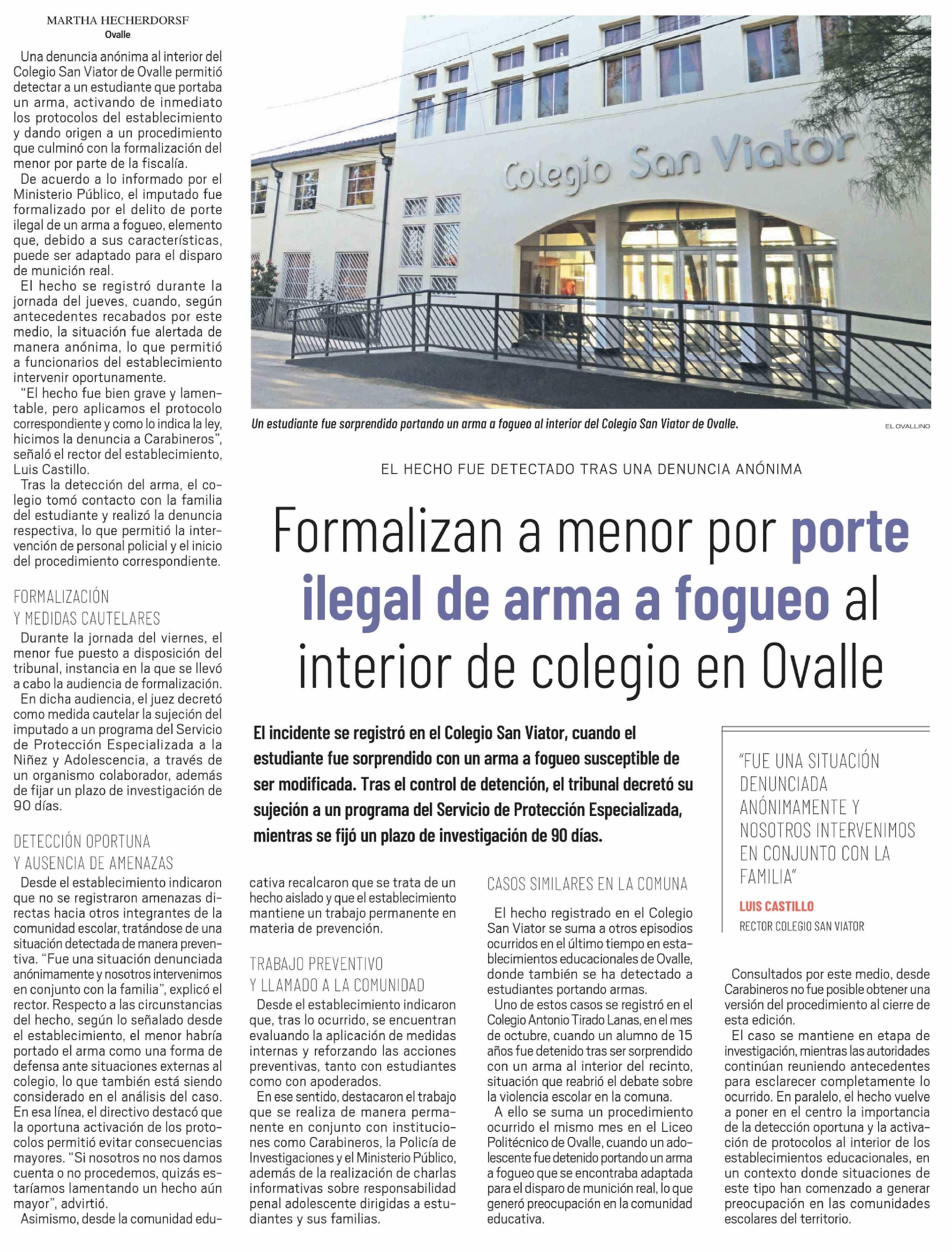 Título: Formalizan a menor por porte ilegal de arma a fogueo al interior de colegio en Ovalle